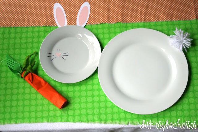 Will the kids have their own table at Easter dinner? Then this bunny plate tablescape for kids is just the thing.