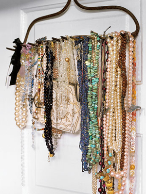 … or even a necklace holder. I think a rake would make a really fun way to display jewelry in a shop!