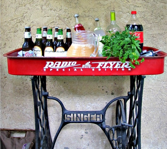 You could also make a very simple version and use it as an outdoor table.  I love this blue version of the traditional red wagon.