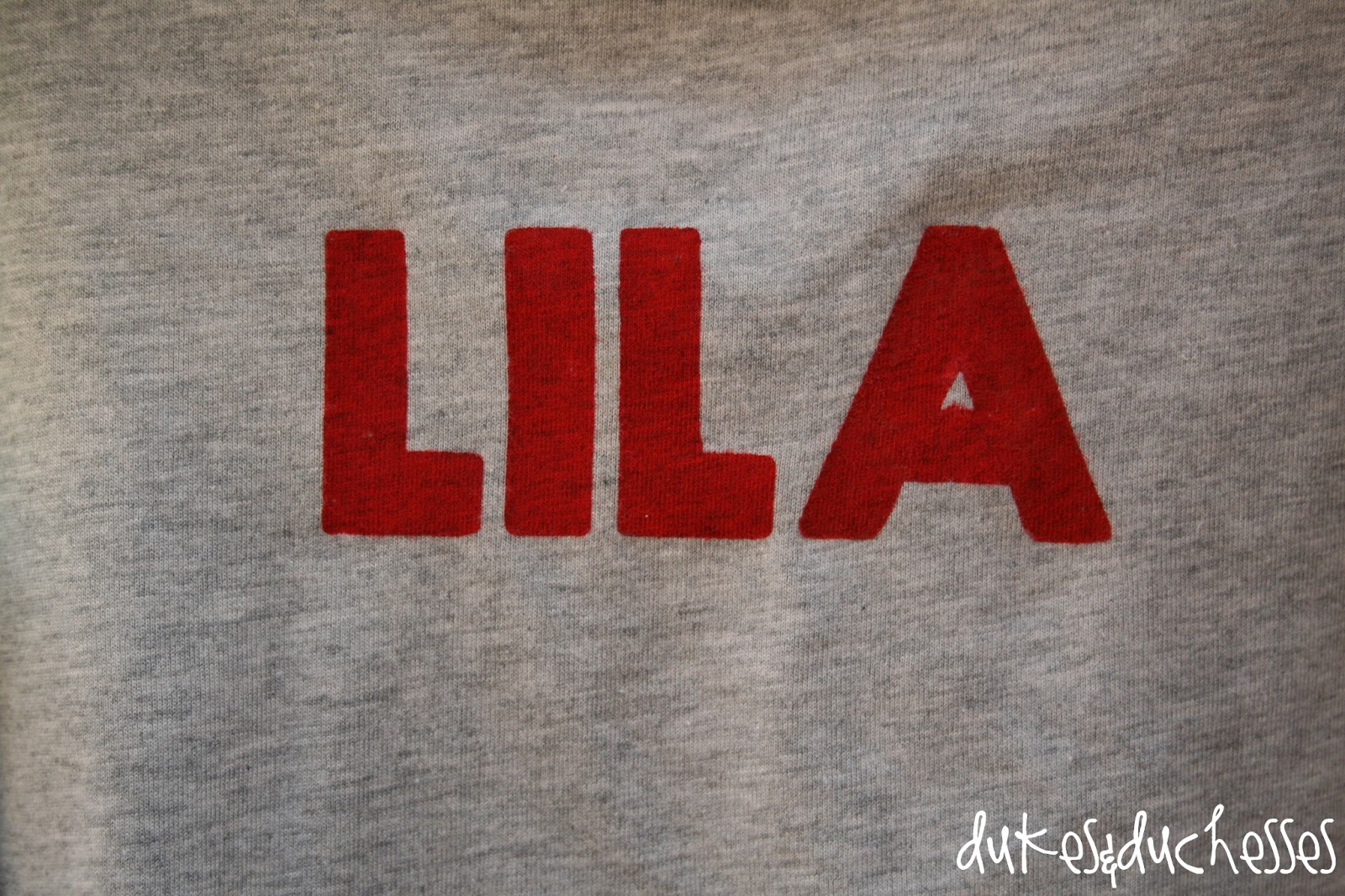 I cut a vinyl stencil using my Silhouette and used DecoArt fabric paints to stencil the pin and bowling ball onto the shirts.