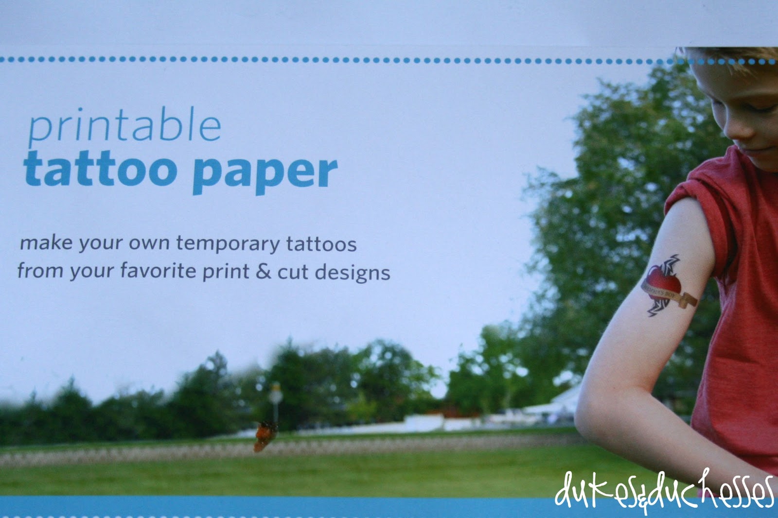 All you need to make your own tattoos is tattoo paper and a printer {this tattoo paper is made by Silhouette but you don’t need a Silhouette machine for this project}.