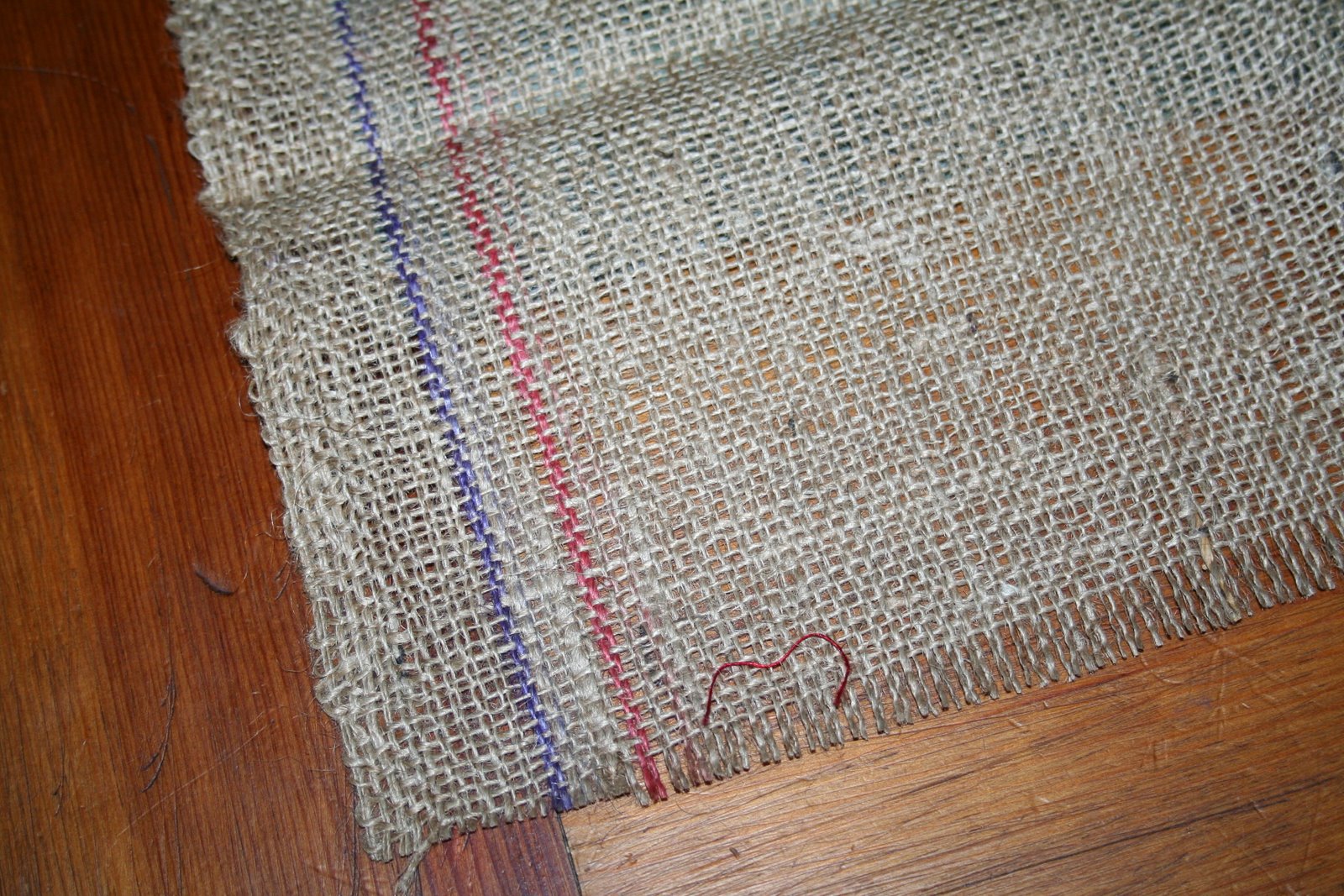 I left the colored edge on this rustic piece of burlap for a more salvaged look {I think this piece may have started as a coffee bag or something similar} and I can’t wait to use it on our Thanksgiving table.