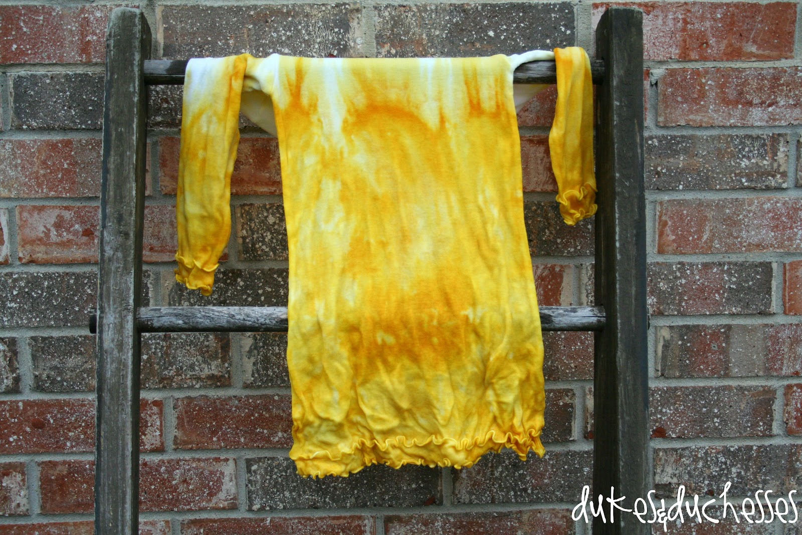 I used Golden Yellow and Sunshine Orange RIT Dye for this project and a cotton dress from Dharma Trading Co.