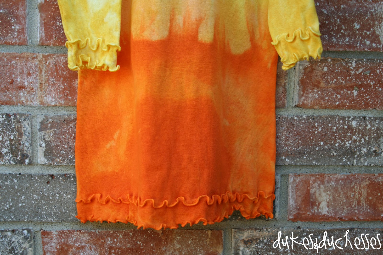 This is absolutely adorable! I had been thinking about how I could create a candy corn dress for my daughter but hadn’t considered using dyes. I love this!