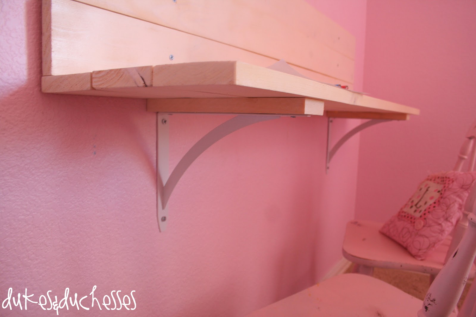 I’m so pleased with how this DIY wall desk looks. It’s a really sweet spot in the room and I know my girls will spend lots of time coloring and writing at their little space. And it doesn’t take up much room at all, which was the aspect I most needed.