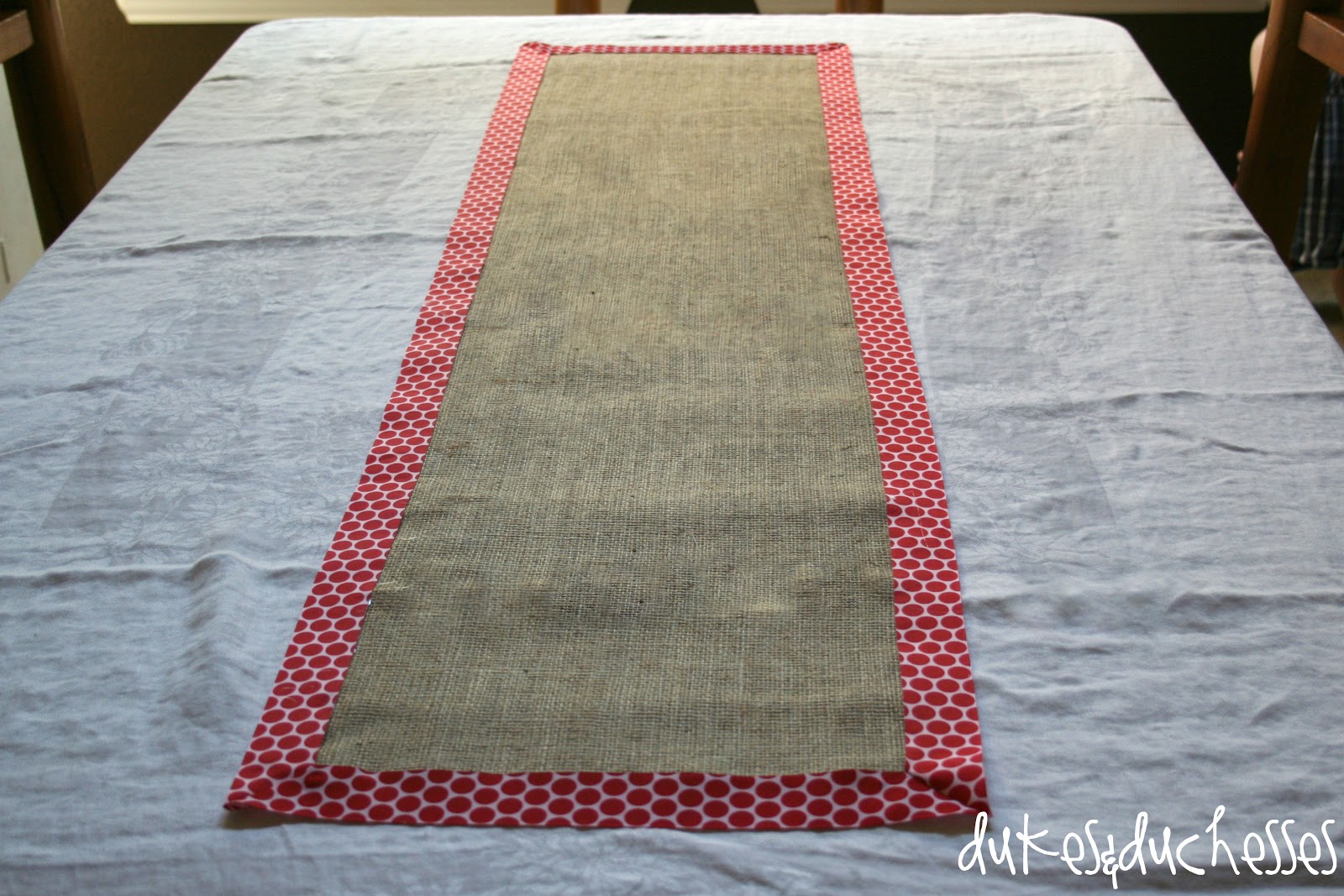 I think it’ll look so pretty on our Christmas table. I love the bright red against the burlap and the mix of rustic and cute.