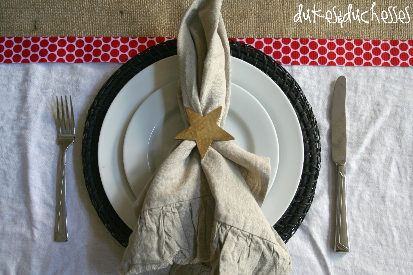 I love the contrast of the red and white with the burlap!
