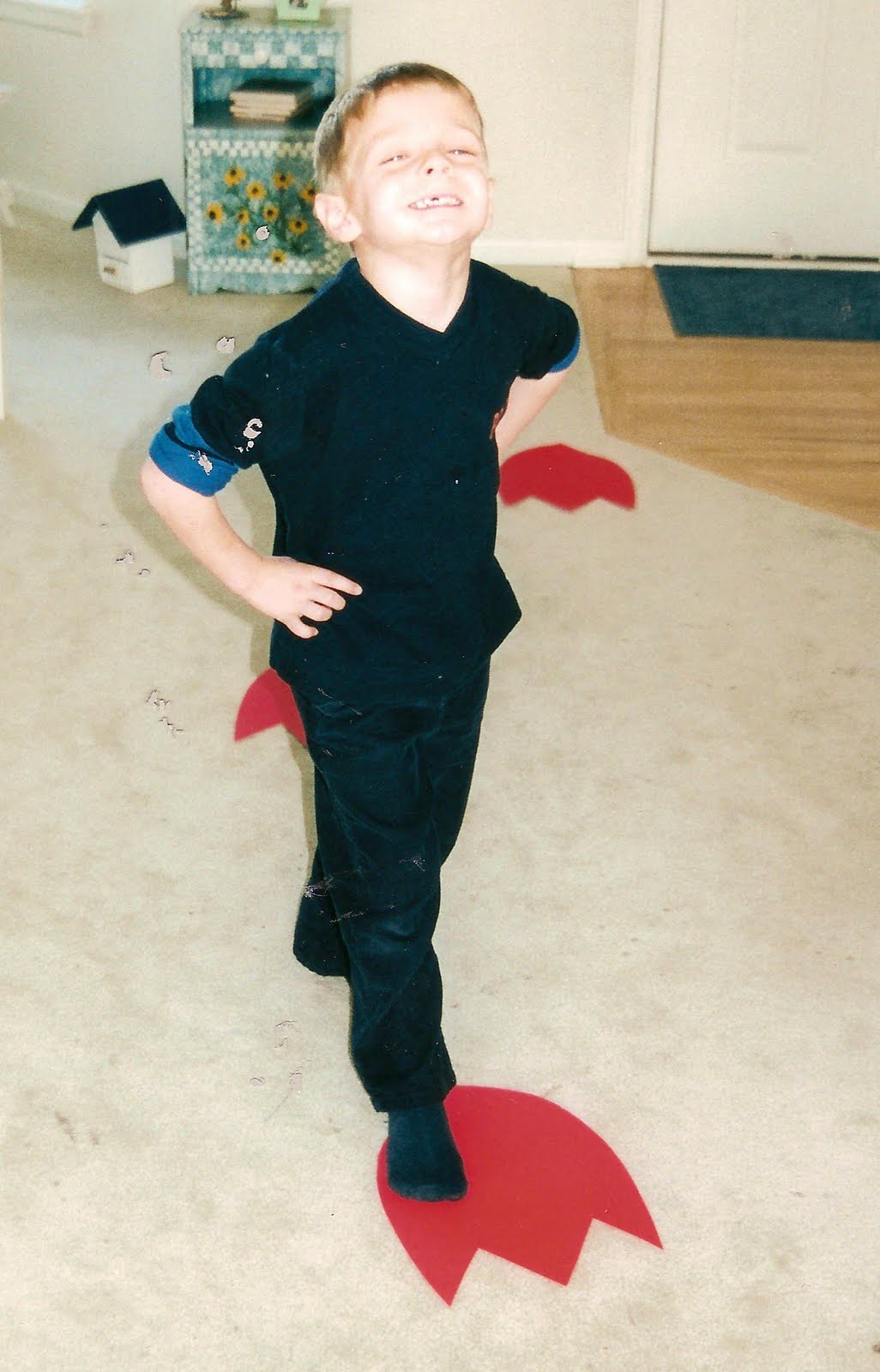 The invitations were simple construction paper dinosaur footprints mailed in large 5×7 envelopes.