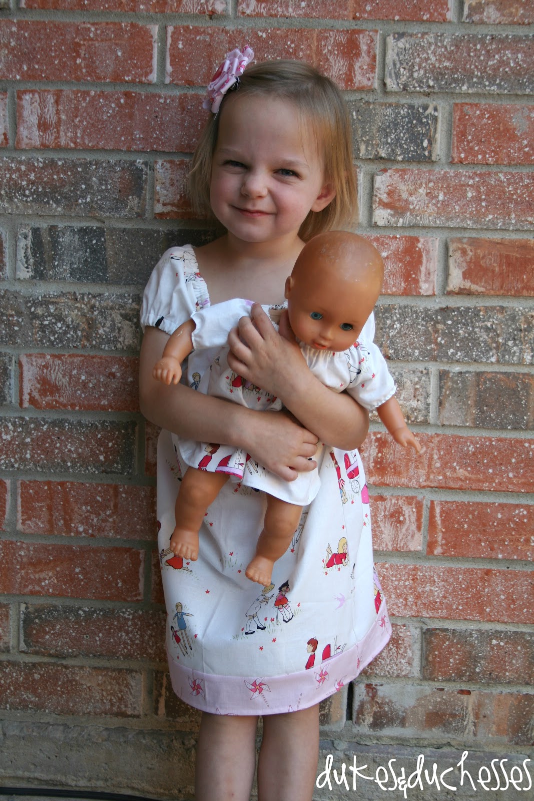 Tate and Stella {the doll} got all decked out in their homemade matching birthday dresses {this fabric is just so cute!} …