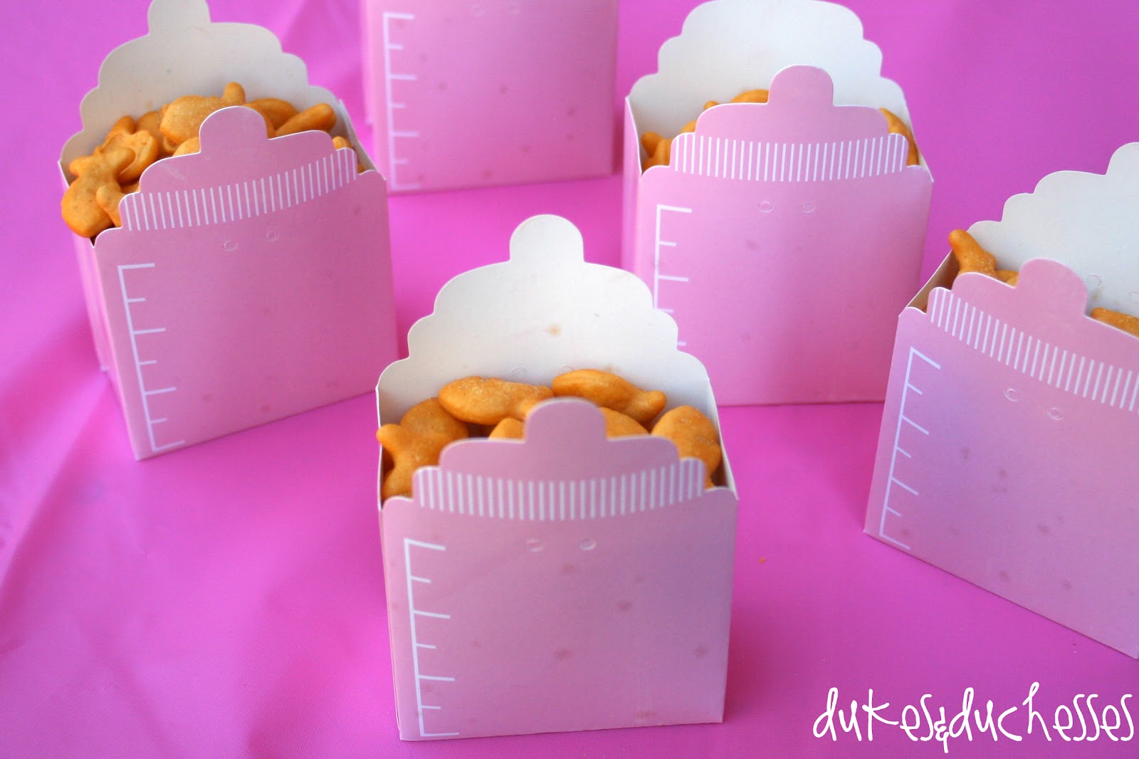 … goldfish served in bottle-shaped favor boxes from the dollar store, and grapes.