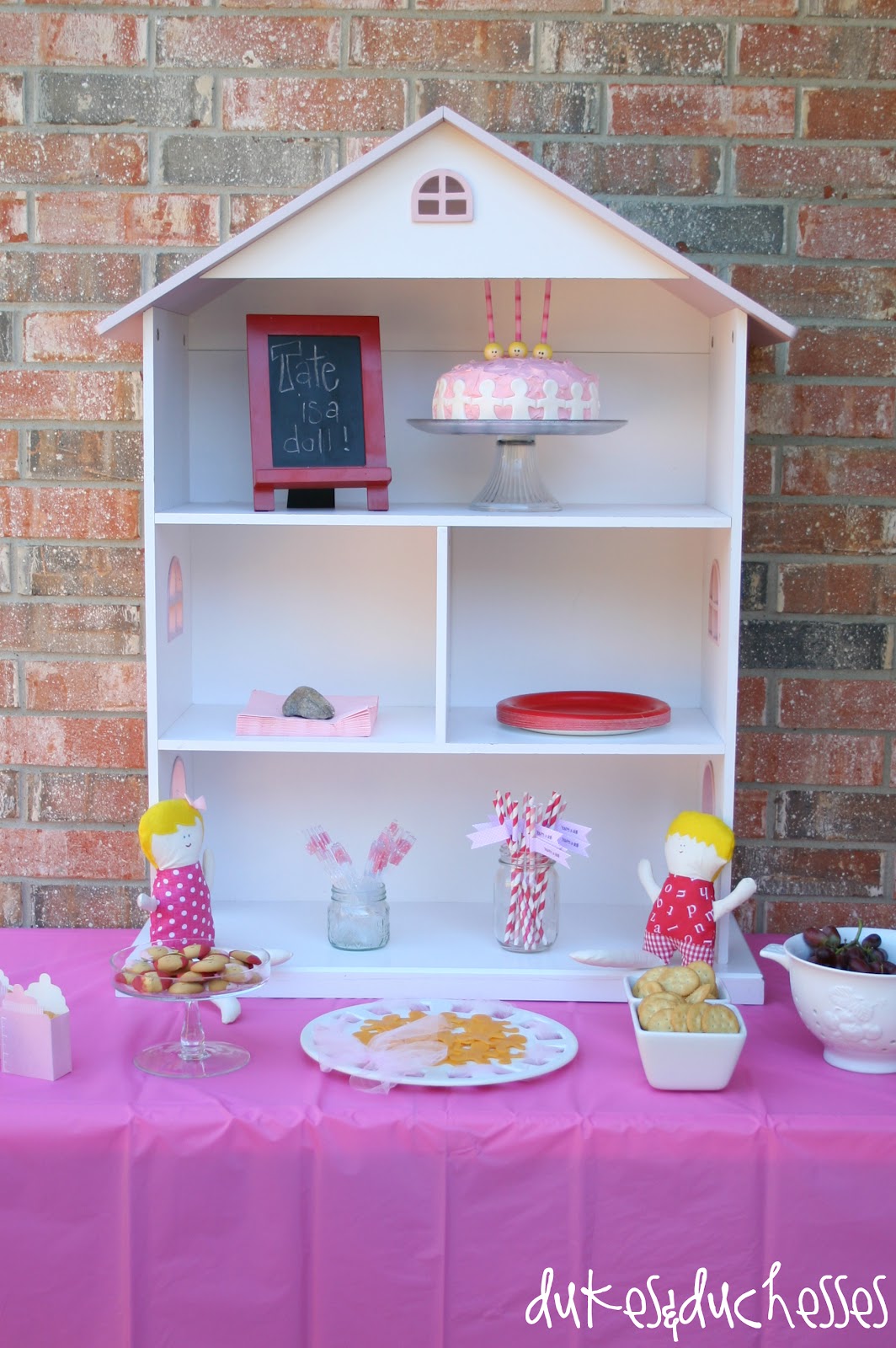 I kept the party very simple but added some fun themed details. The dollhouse shelf I rescued from the trash was the perfect backdrop for the snack table and a fun way to display the birthday cake.