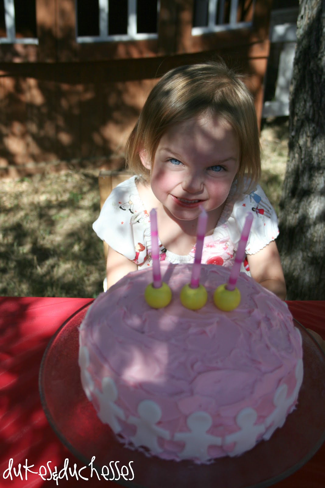 The little doll face candleholders looked so cute perched on top and added a fun pop of color to the cake.