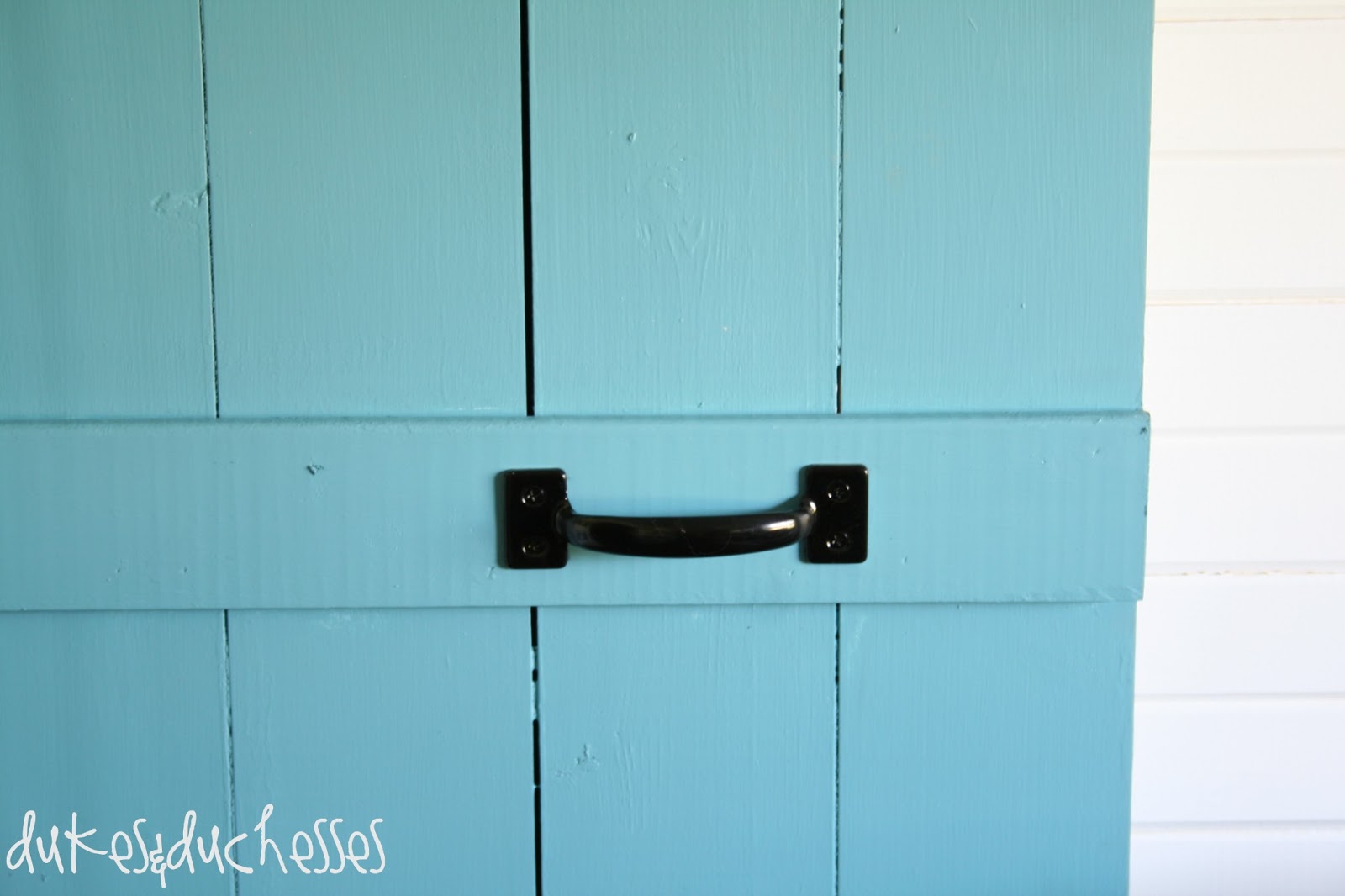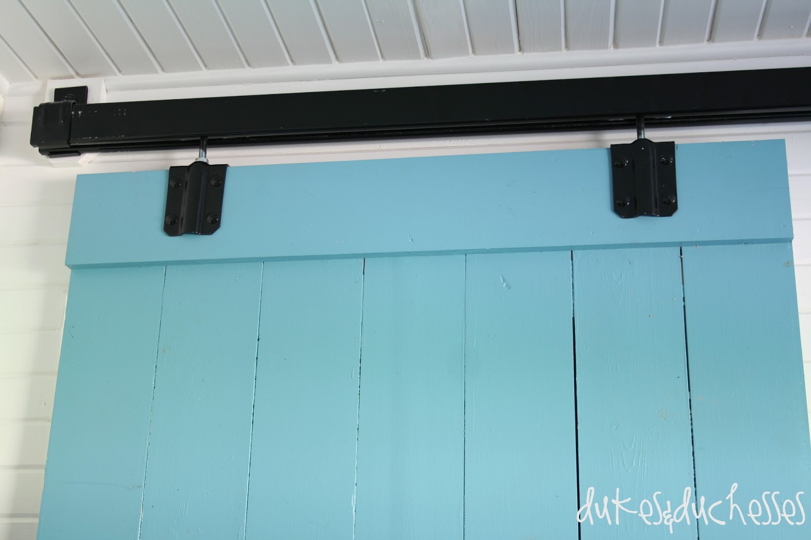 I’m going to take you straight through to the kitchen to one of my very favorite features in the whole house: the turquoise sliding doors on the back wall of the kitchen.