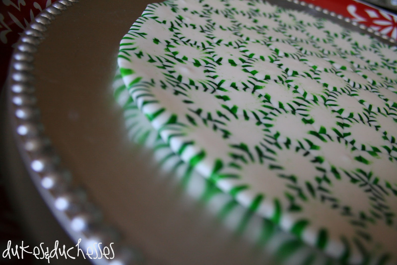 Let the peppermint plate cool fully and then use this pretty and festive peppermint serving tray to hold a lovely dessert on Christmas Day or at your annual Christmas party.