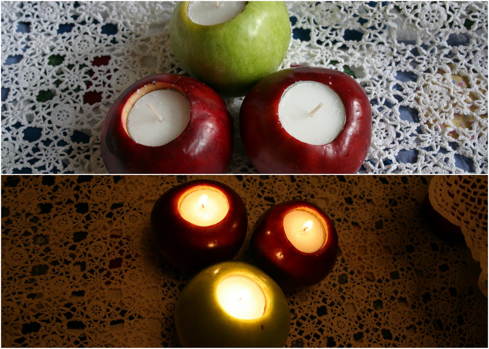 p.s. love your apple tea-lights – you could use mini pumpkins in the same way for Halloween decor!
