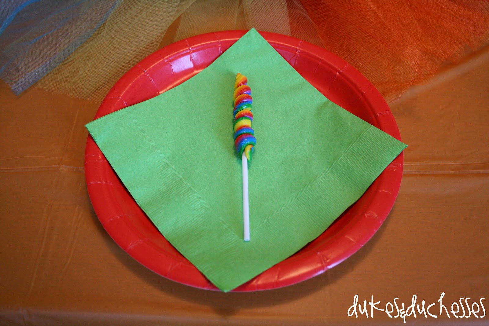 Yesterday’s rainbow party was lots of fun. You really can’t go wrong with bright colors, can you? They just lend themselves to a festive atmosphere. It was a fun party to plan as well. The entire party came straight from a Pinterest board that I made with the birthday girl {why recreate the wheel when there have been so many great rainbow parties already?} … you’ll see my inspiration sources cited throughout this post.