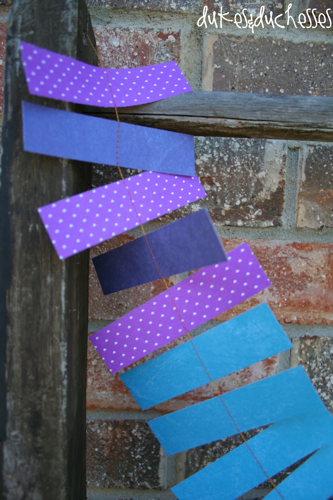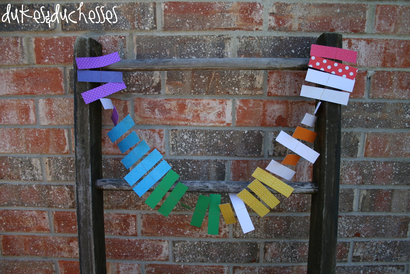This paper rainbow garland {inspiration found here} will be placed above the snack buffet.  I love sewn garlands … they’re so quick to throw together and I think they have a big cute factor.