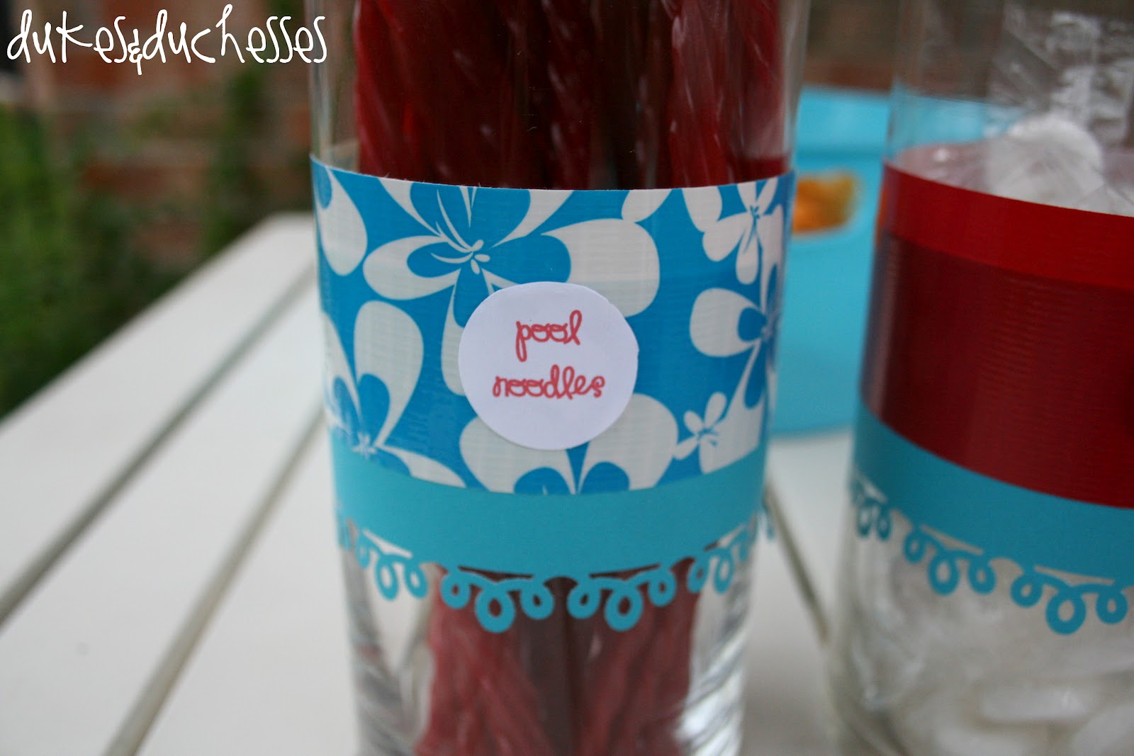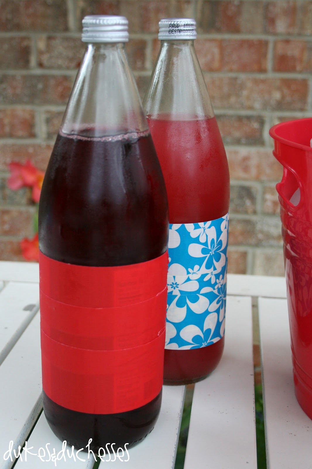 I served two flavors of Italian soda {red, of course} and wrapped them in duct tape.