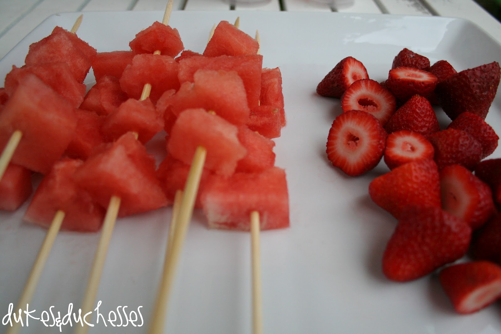 I served watermelon skewers and strawberries {red!} …