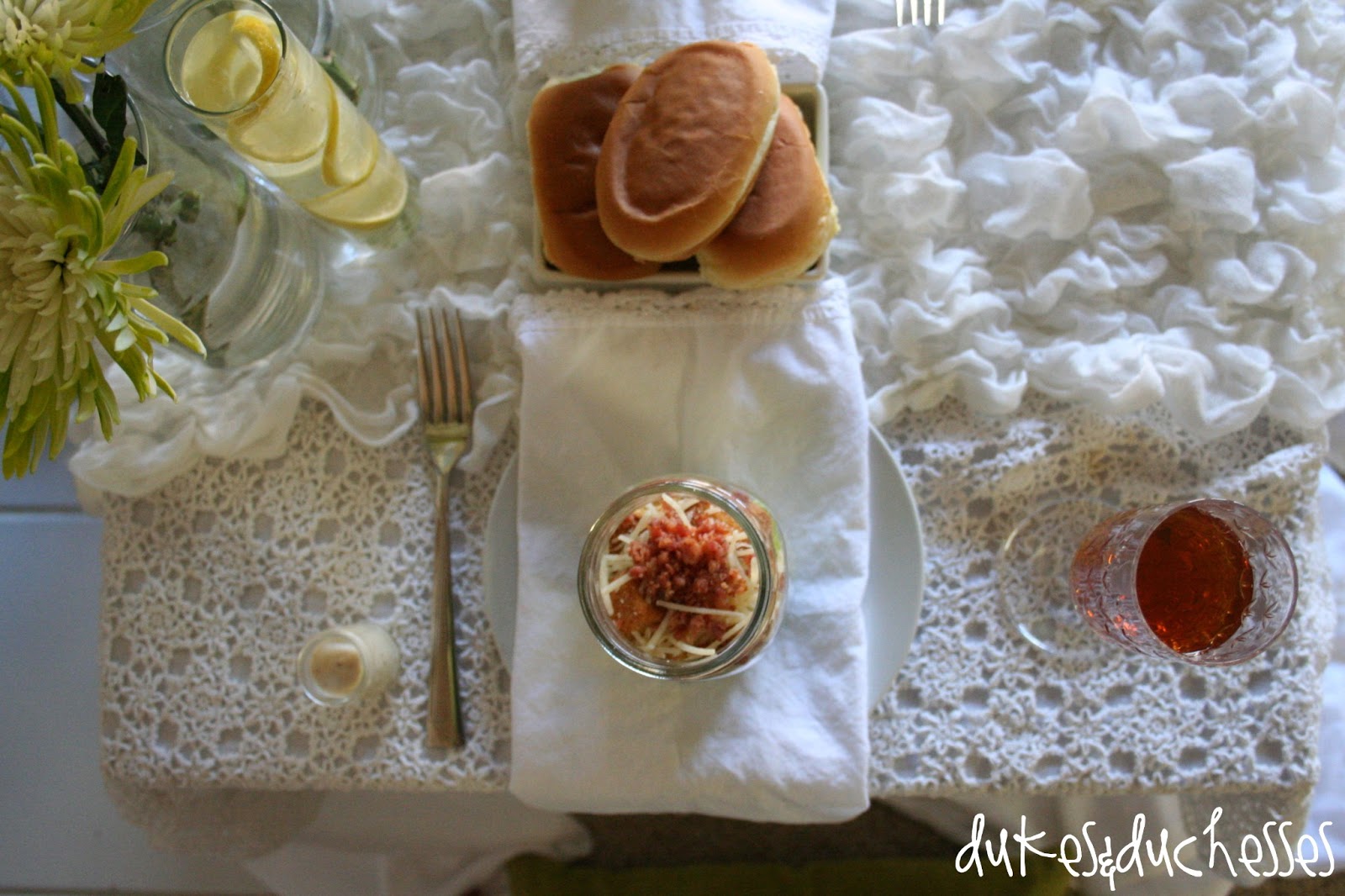 Since it was the middle of the day, I skipped the wine and served sweet tea {this is the South, after all} …