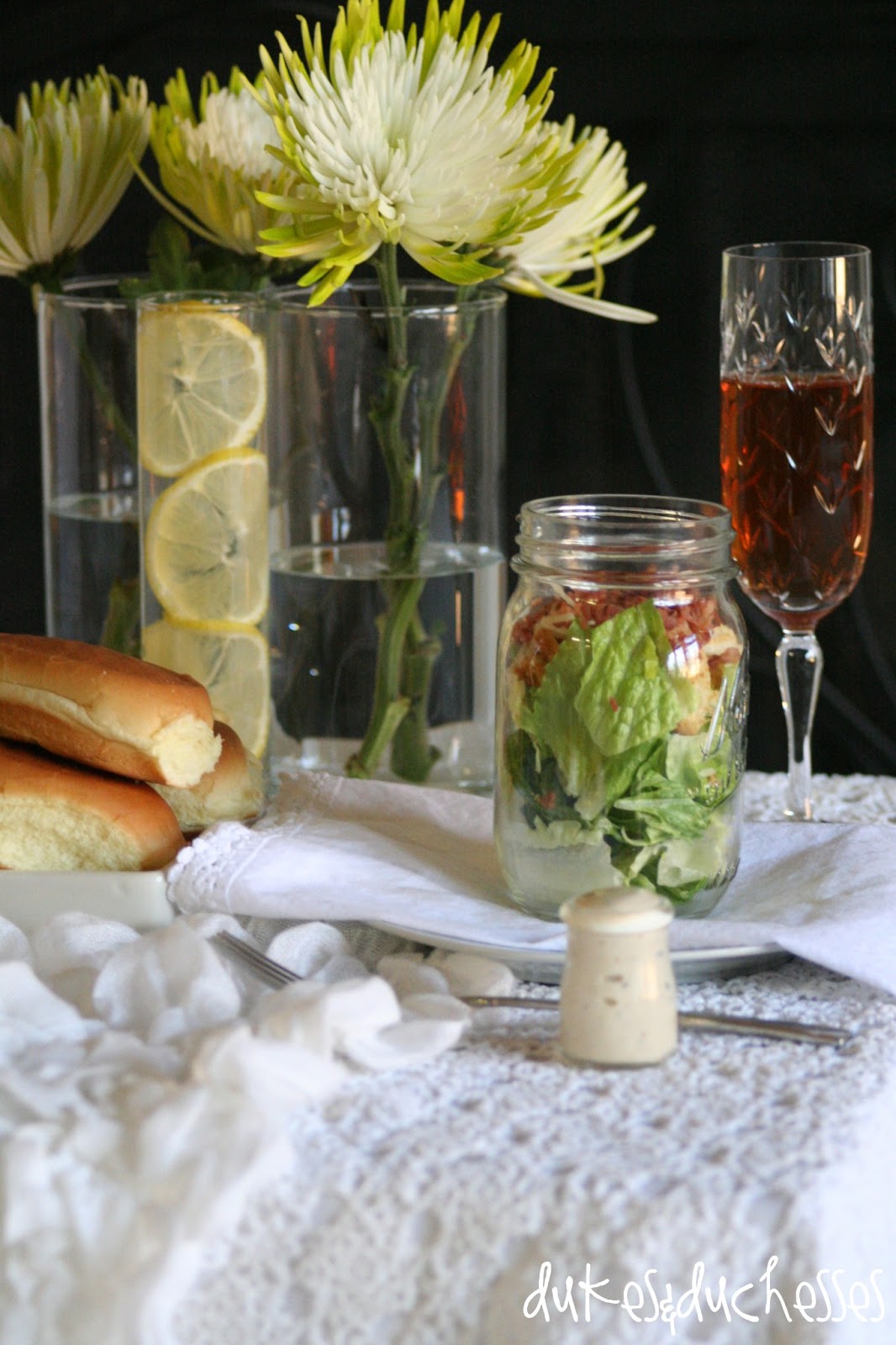 What a beautiful and sweet setting!! I love it. Cute salad in the mason jars!!