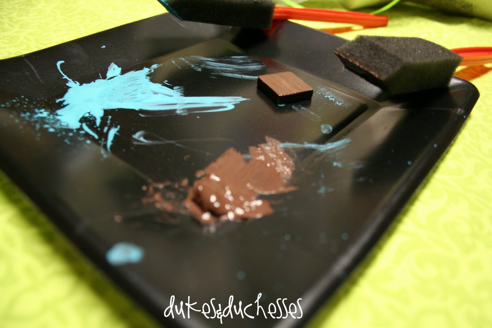 I started by painting the scrabble tile in different colors and then sanding randomly to get a distressed look. I used only certain colors in some areas so the coloring would vary on the ring. I think I’m going to try using some crackle medium on the next one I make and see how that turns out. This time around, I put a coat of Mod Podge over the paint to seal it. I didn’t do that on the first one and it hasn’t yet made any difference.