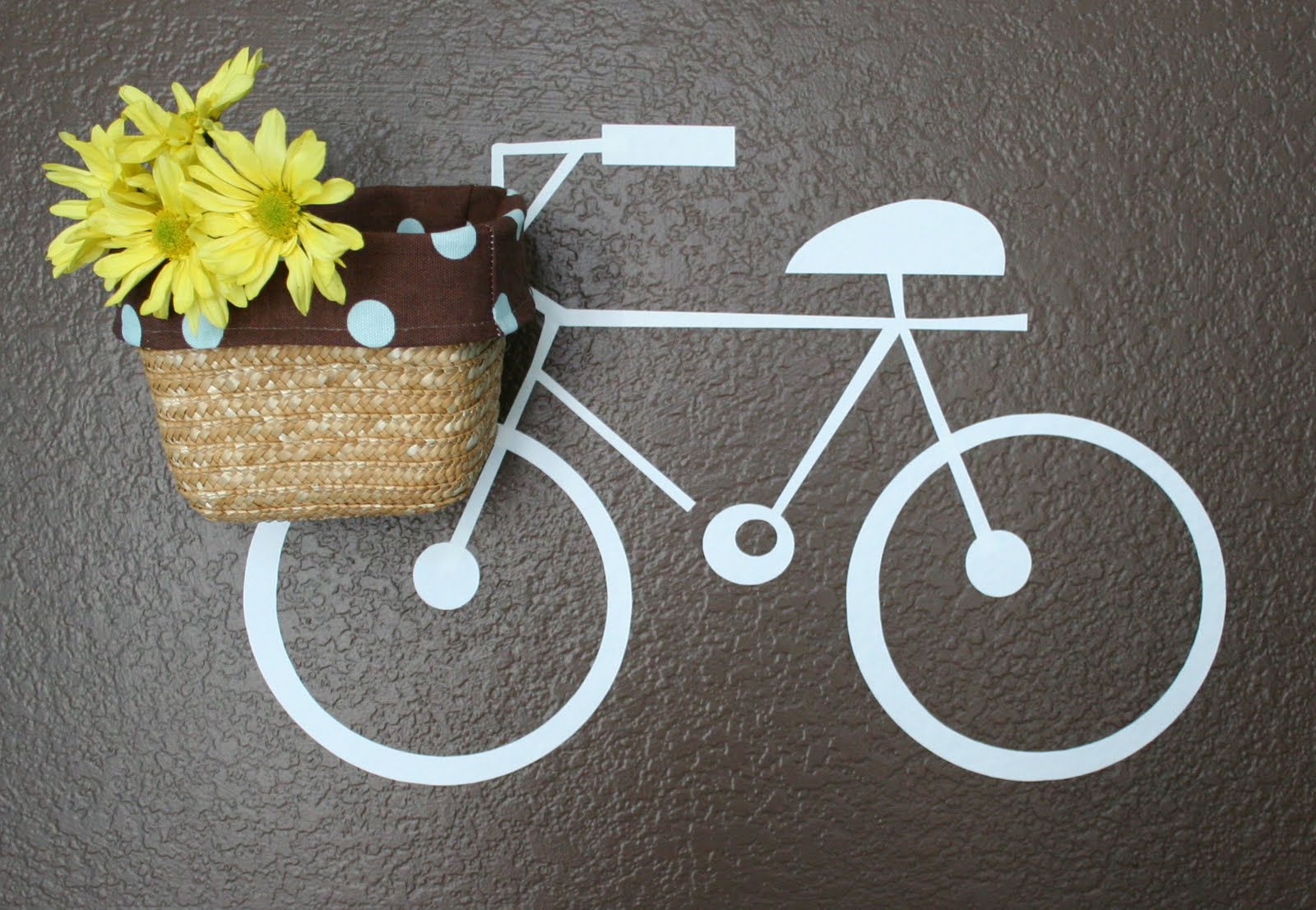 This project was a bit finicky but fun to put together. I used a downloadable Silhouette image of a bike. This image was perfect because the pieces were all separate, meaning I could enlarge it to the desired size and then attach the vinyl pieces together on the wall. It allowed me to make the bike fairly large.
