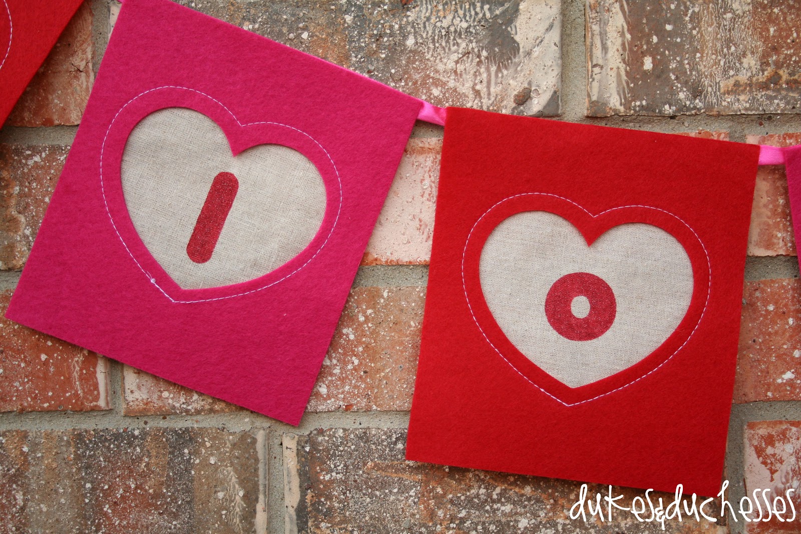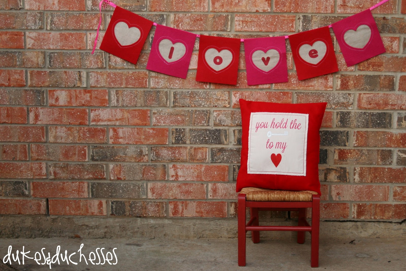 I’ve been doing some fun Valentine painting and my house is now decorated with an adorable felt valentine banner and pillow! I’m loving the red and pink … it’s totally put me in the mood for Valentine’s Day! There’s just something I love about red and pink mixed together.