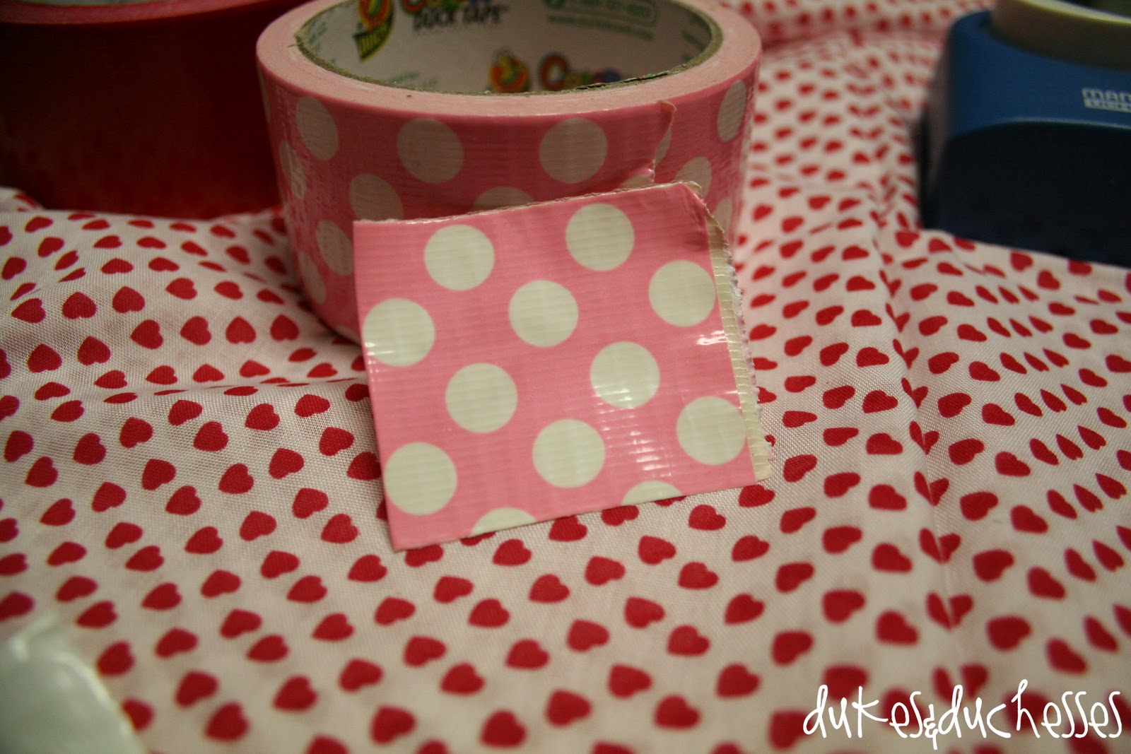Duck Brand Duck Tape recently sent me some duct tape in fun Valentine colors and I set out to create a little Valentine’s Day tablescape, using a Pottery Barn catalog photo as inspiration.