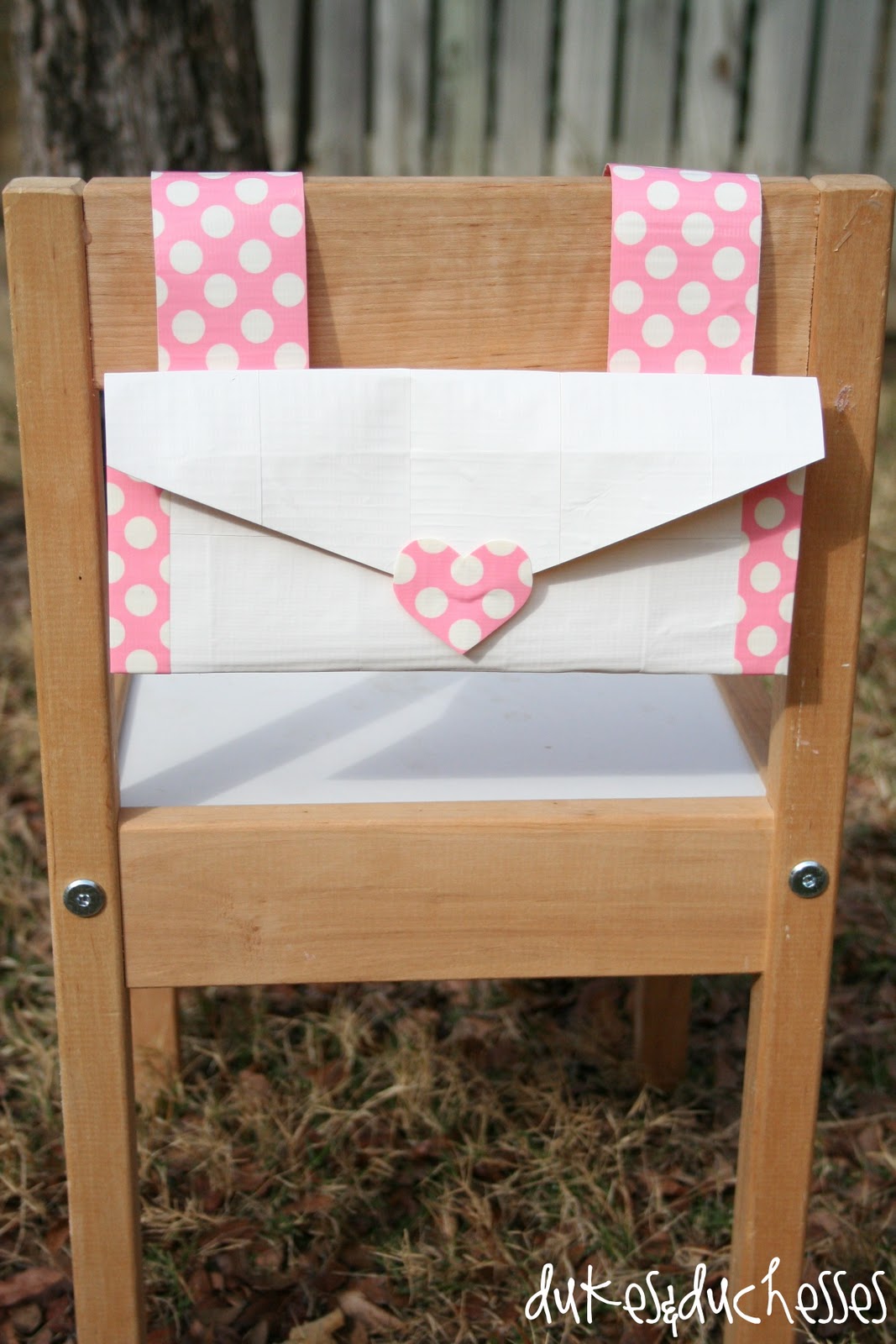But the highlight of this Valentine’s Day tablescape? This duct tape chair back envelope. It’s perfect for tucking away a love note or two. Click on the link for the full tutorial.