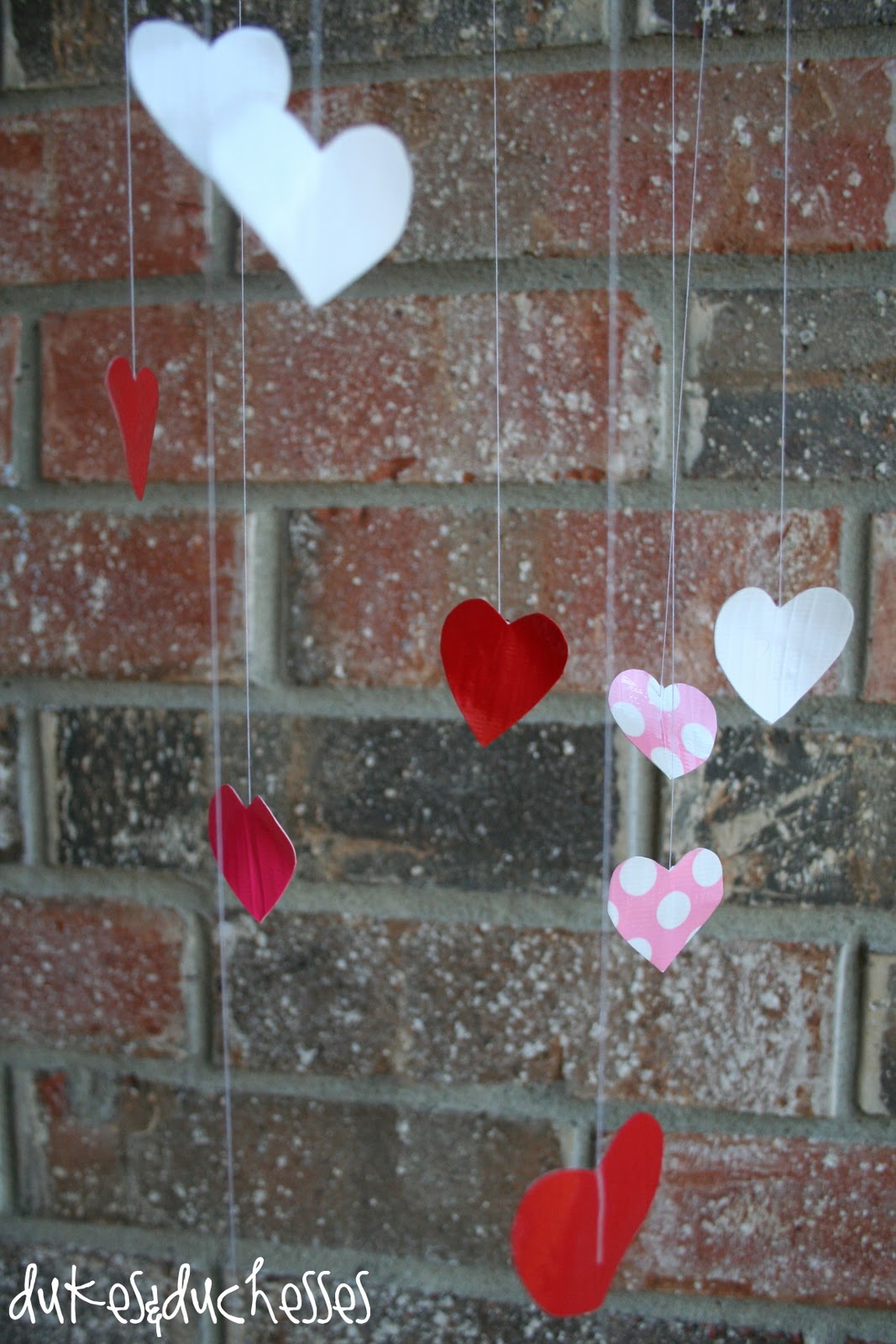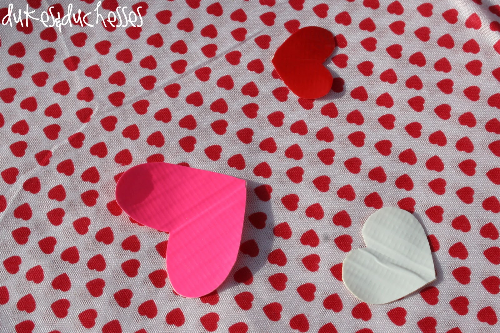 More double sided hearts? Sure! A duct tape heart chandelier added some sweet ambiance above the table. Valentine’s Day is the perfect day to mix red and every shade of pink, isn’t it? I used Duck Brand Duck Tape in Winking White, Flamingo, Cha Cha Cherry, and a patterned pink polka dot.