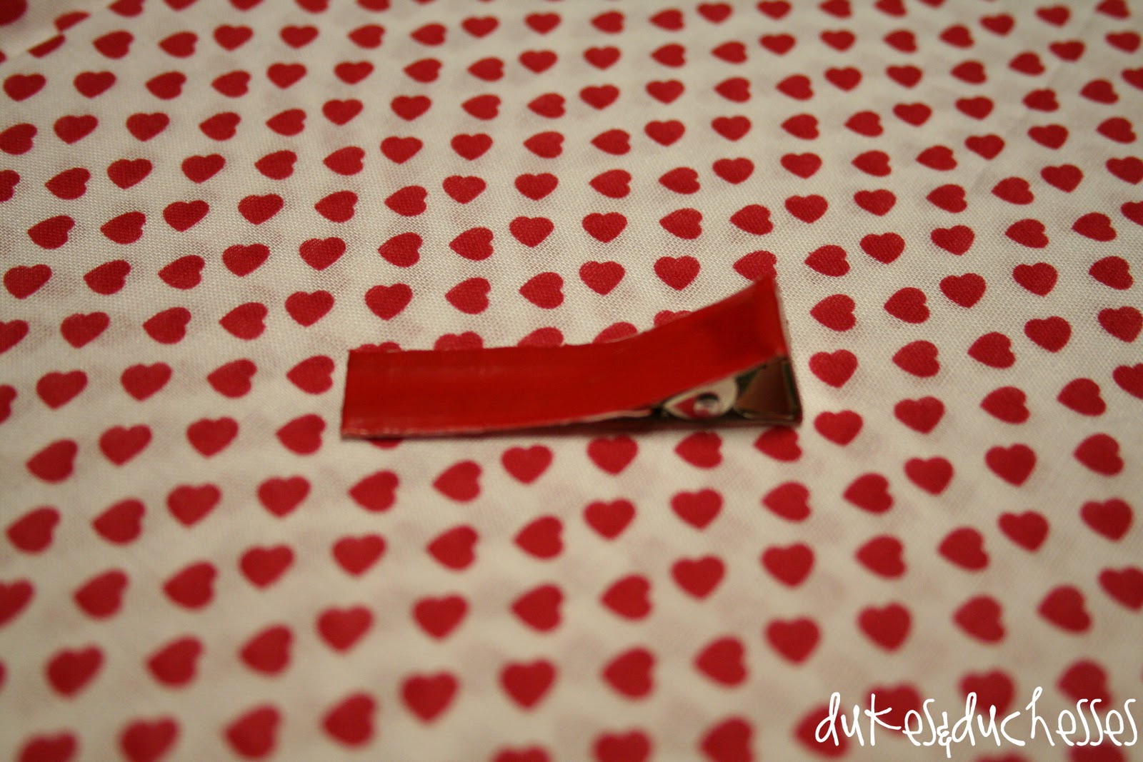 To make these barrettes, I simply covered an alligator clip with a thin strip of duct tape …