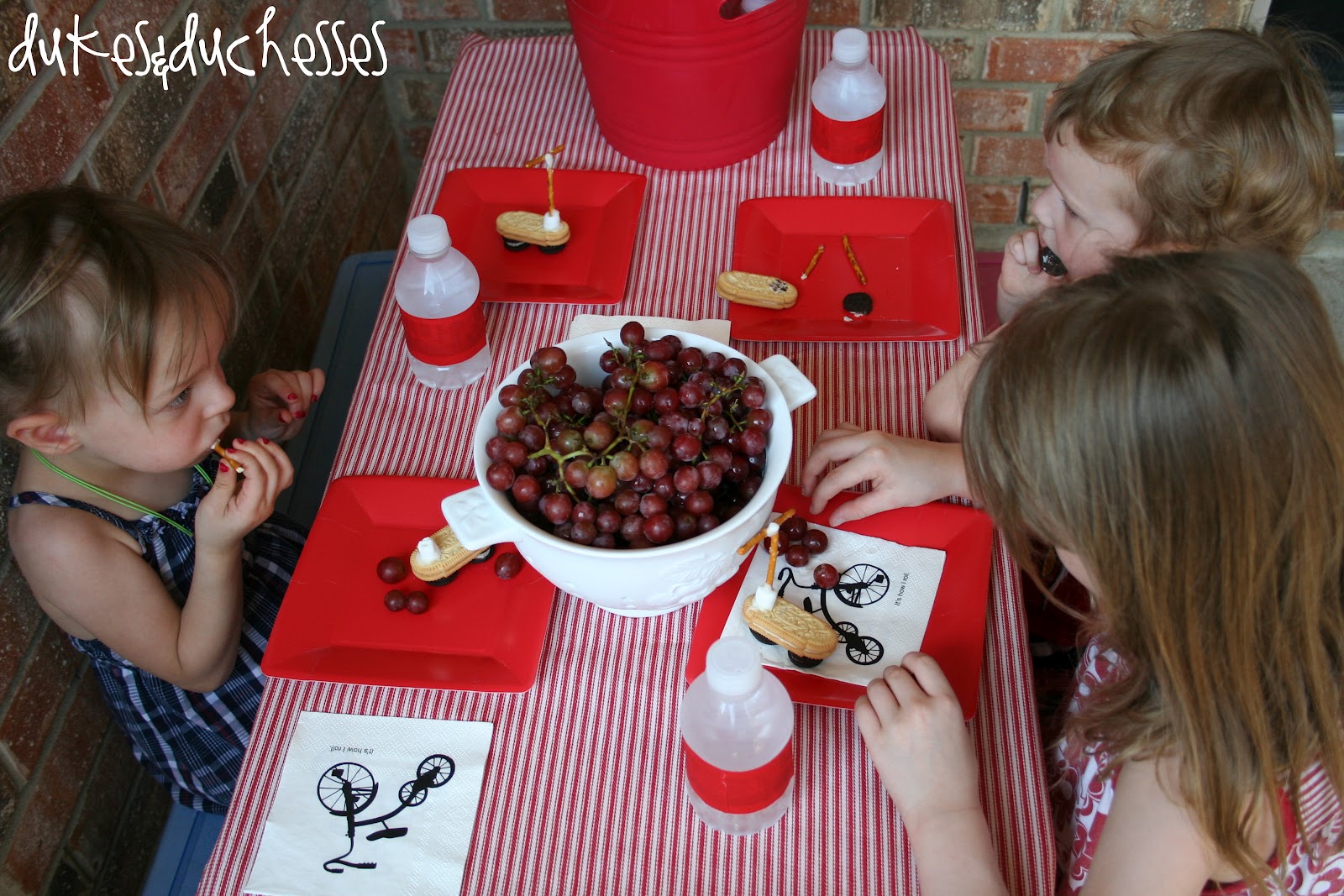 I’ve loved these little scooter snacks since I first saw them and had to serve them for our playdate. Aren’t they cute? {I used candy melts to hold the scooters together rather than icing.}