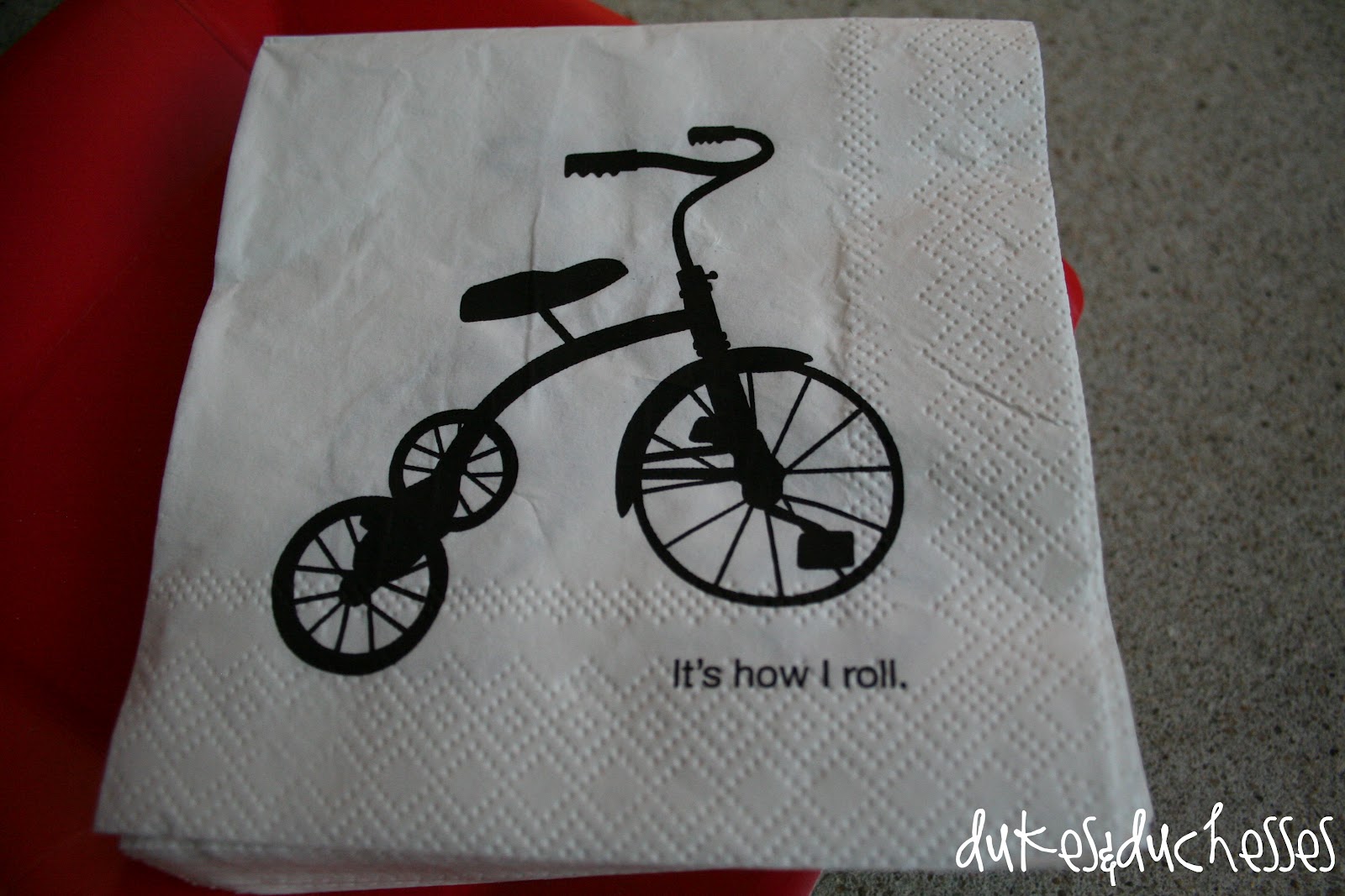 This little wheels playdate started with these napkins. Home Goods. Clearance. I loved them.