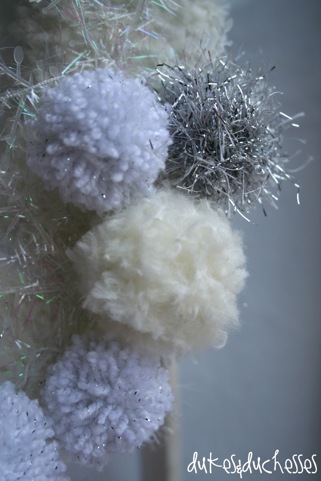 I used a pom pom maker which may have made the process a bit tidier but I still had a lot of glitter everywhere as well. They didn’t continue to drip glitter after I made them though and I haven’t had any problems with the wreath dropping glitter. I just love your bouquet idea … will you upload a photo to the Dukes and Duchesses facebook page? I’d really love to see it!
