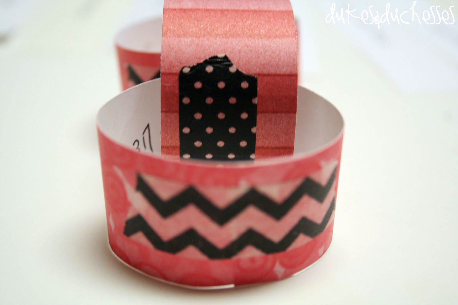 … wrote the story titles {from the plan linked above} on the back of each piece, twisted them into a circle, and and sealed them with washi tape.