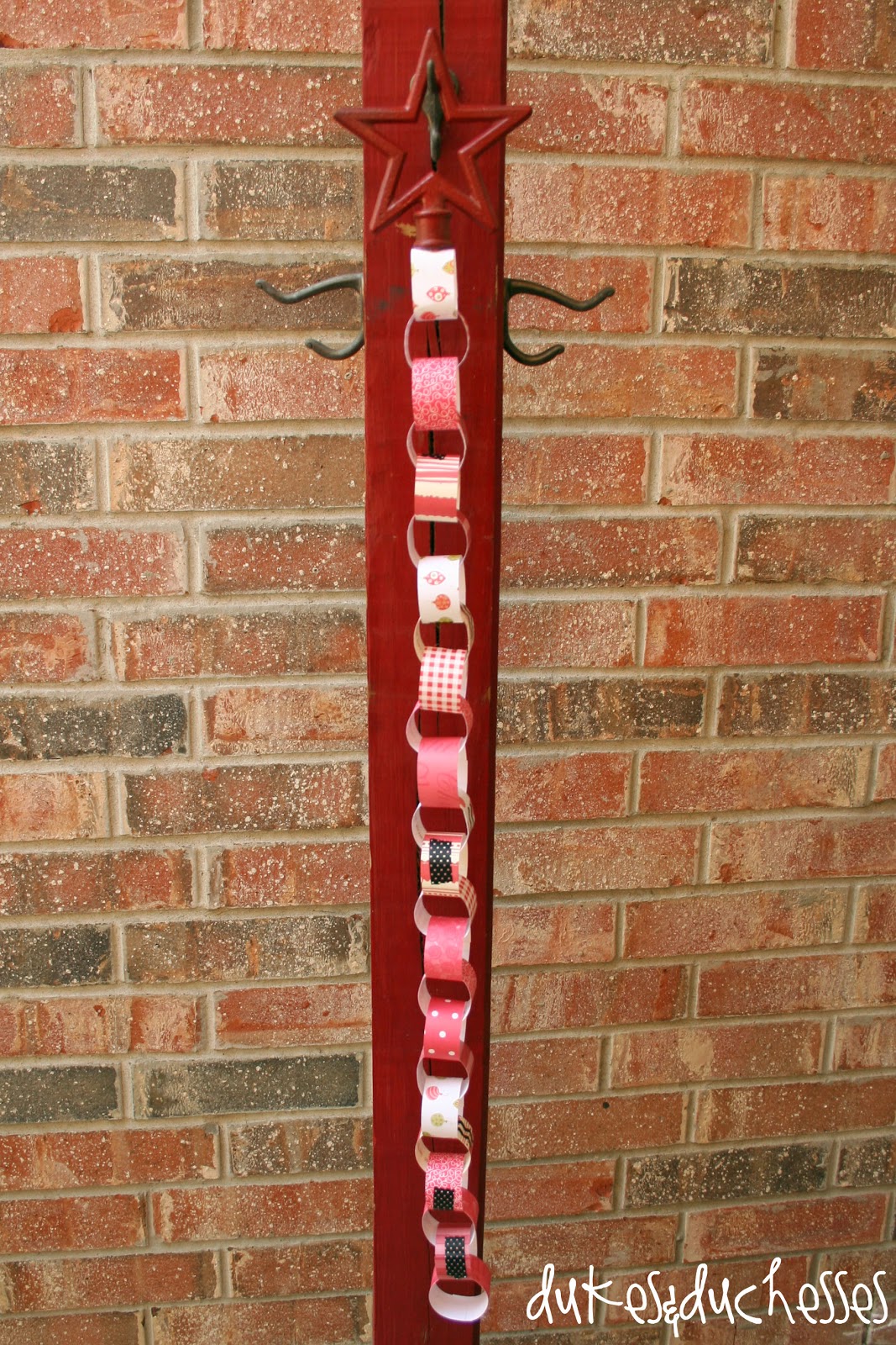 Using hot glue, I attached the links to a metal star I found in the garage {you can’t even imagine all the stuff you can find in my garage!} …