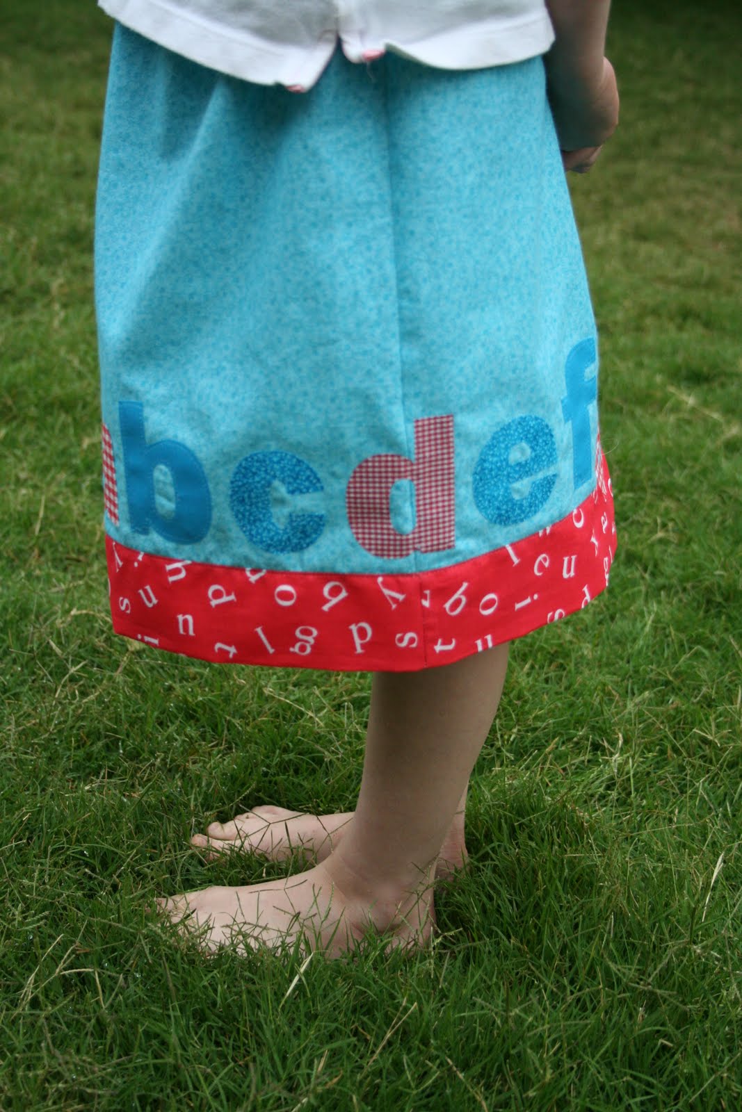 We sing the ABC’s a lot in this house and with kindergarten looming on the horizon for my twins, this little skirt idea came to mind.