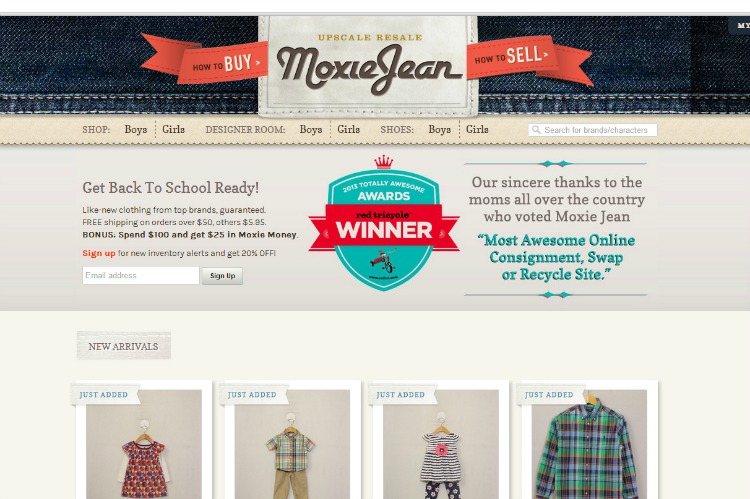 Moxie Jean is for moms who want to buy and sell high-quality, gently used kids’ clothing … and with a free postage-paid Moxie Jean Mailer Bag included with each order, it’s easy to turn outgrown clothes into cash or Moxie Money.