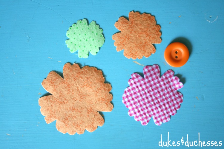 You know I can’t resist adding a little handmade touch to everything. I used my cutting machine to cut layers of flowers then hot glued {yep, glued} them together and added a pin and a bright orange button.