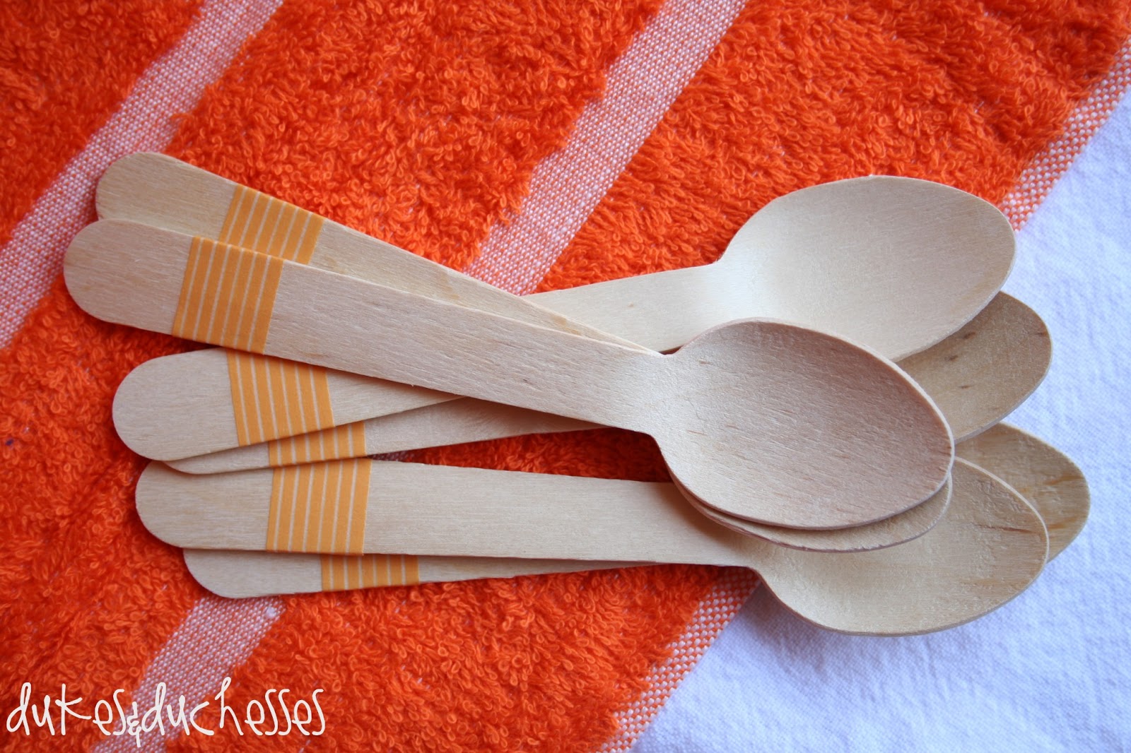 … and I added some washi tape to wooden spoons {so the kids could scoop the last bit of ice cream from their cups}.