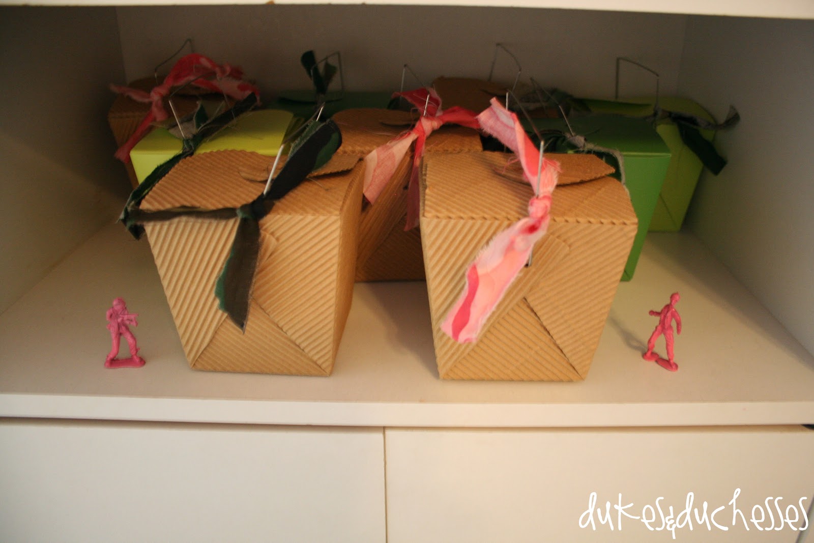 Everyone went home with a box of goodies, including some army men {pink for the girls, of course}.