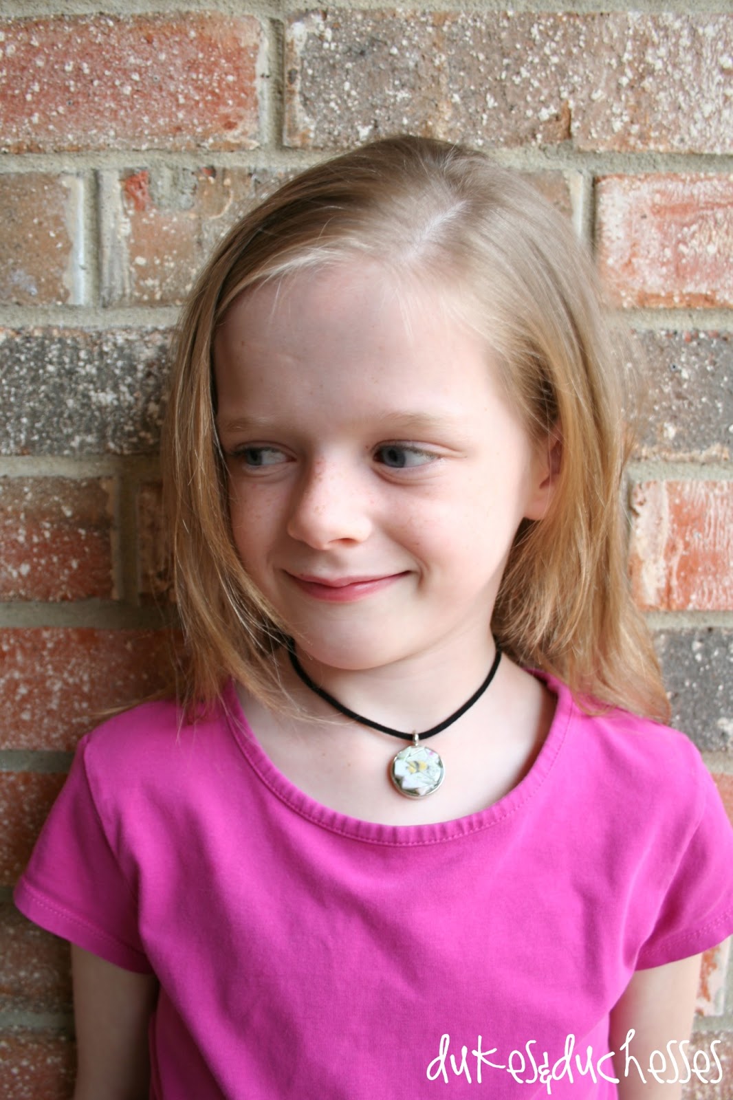 The girls are wearing their pendants on black cord and they look so sweet.