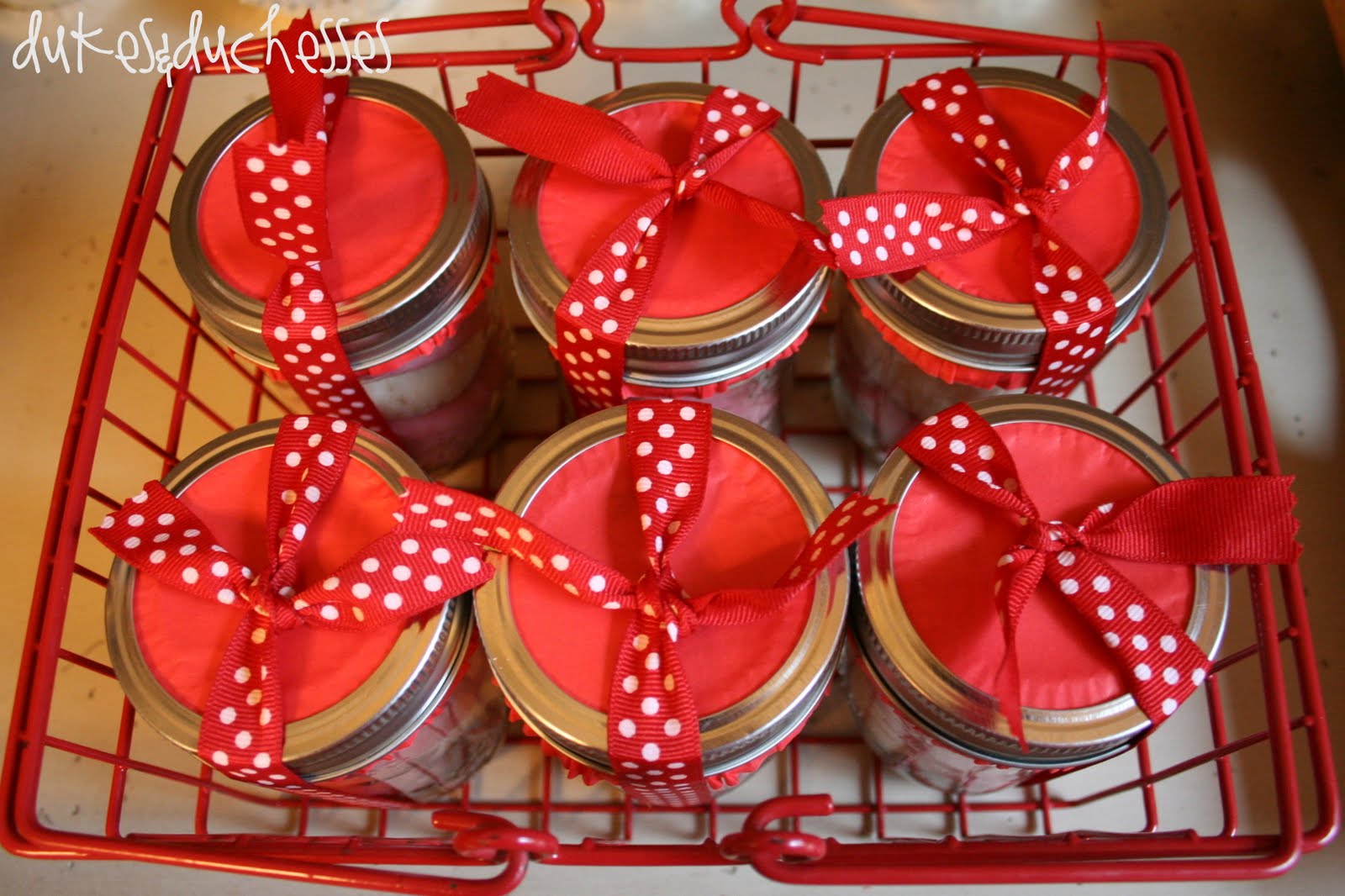 I followed these instructions to make it and packaged it simply in mason jars with cupcake wrappers and ribbon.