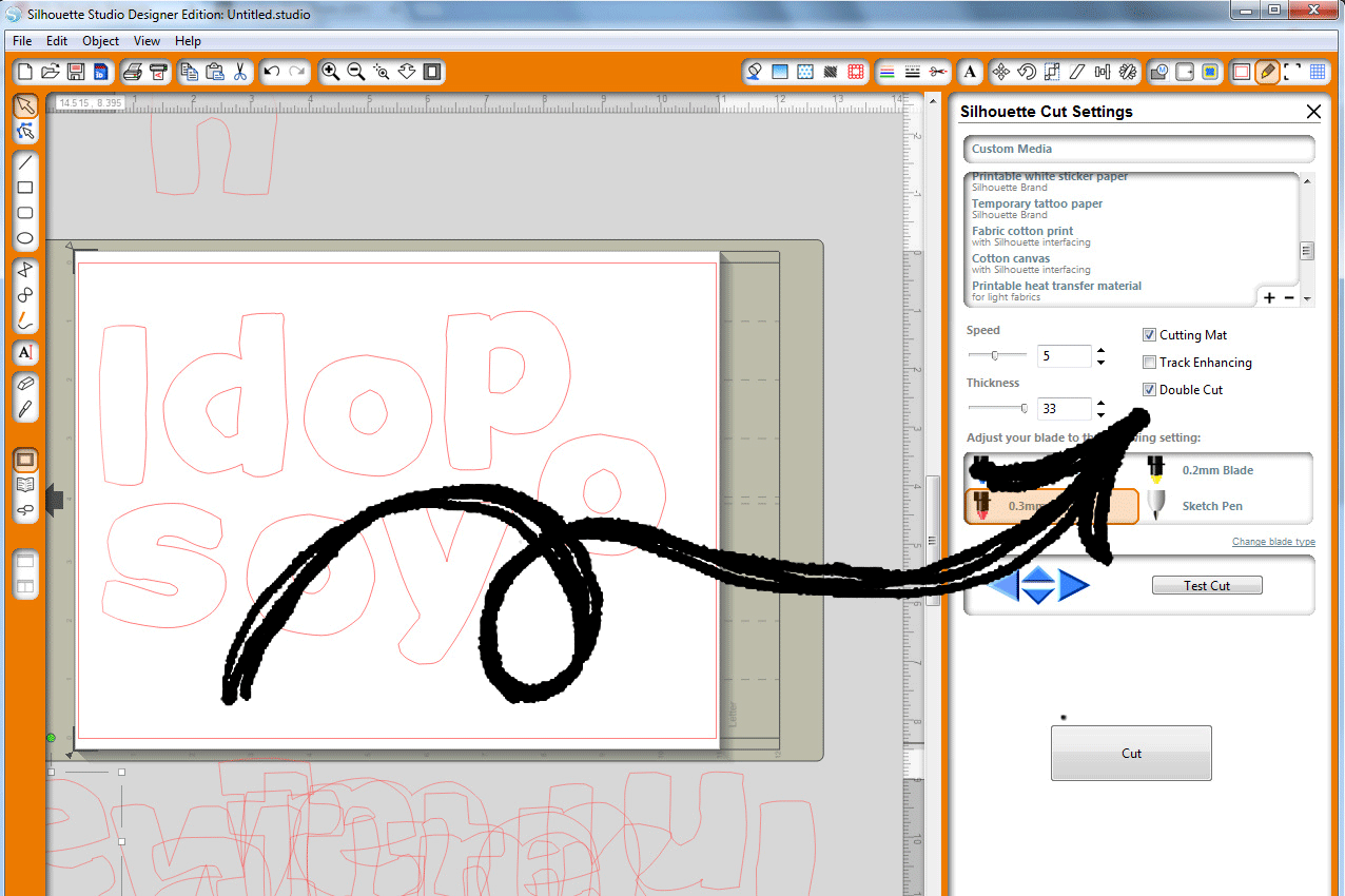 Silhouette recommends using a fabric blade so your regular blade isn’t dulled by other projects. I also double cut when I’m cutting fabric to ensure that it cuts completely. You may still need to trim a few threads when you’re separating the letters from the background.