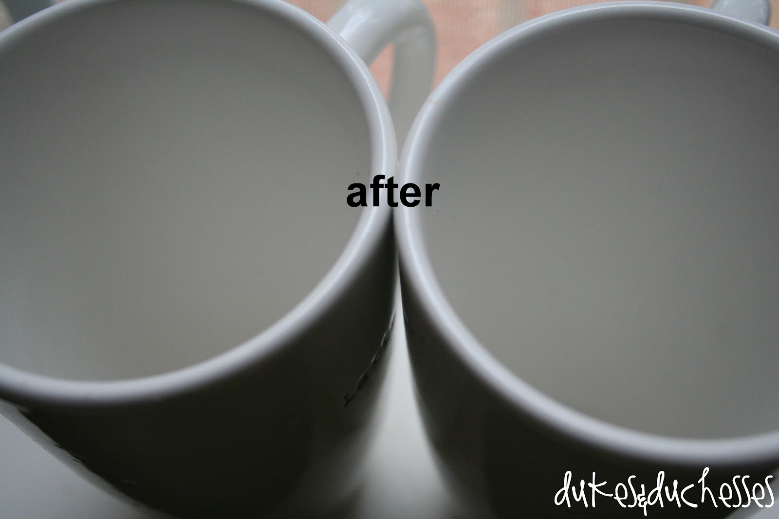 One of my pet peeves is seeing tea and coffee stains on the inside of white mugs. I read that vinegar will remove those stains and I couldn’t wait to put it to the test.