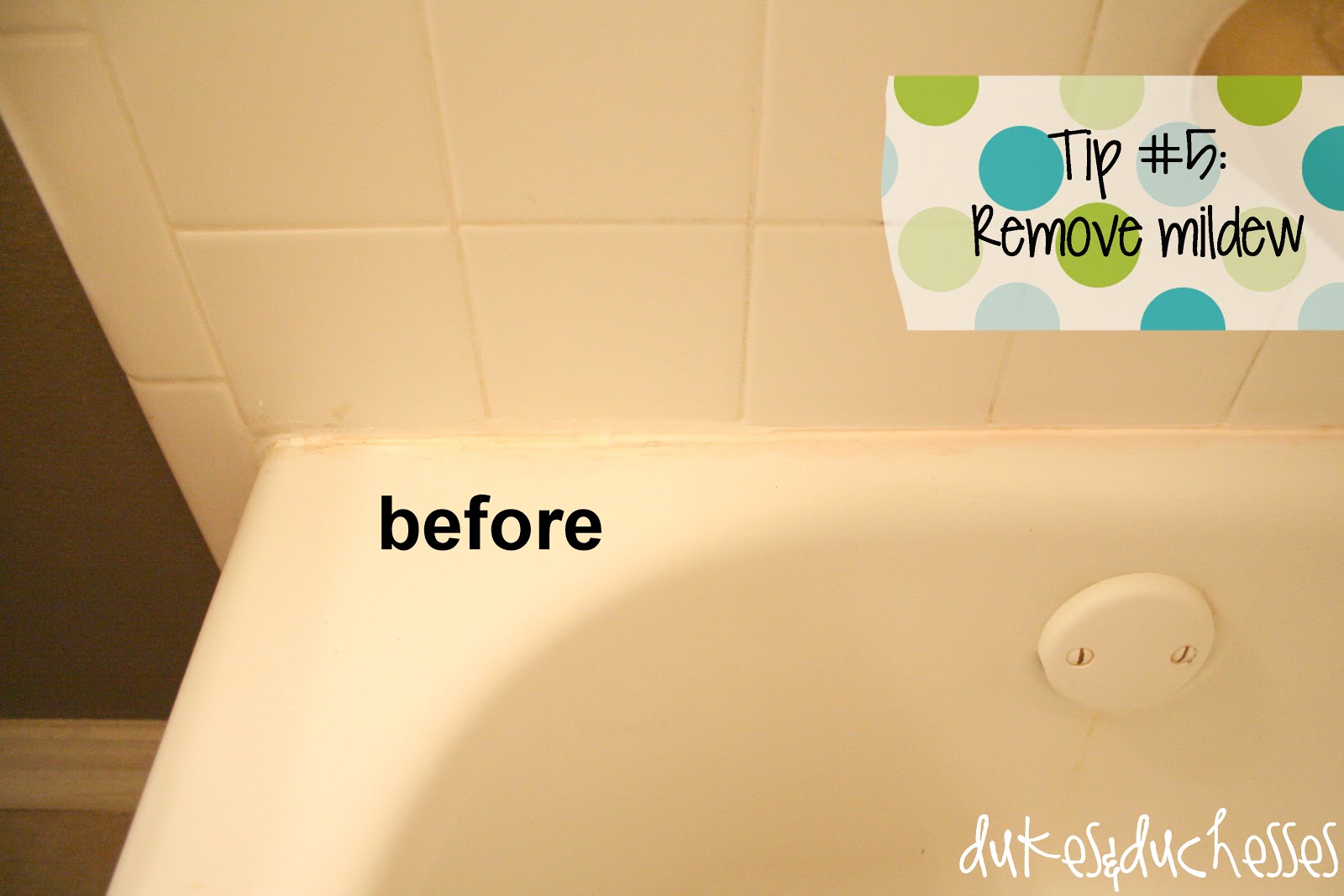 Next I tackled the bathroom of a teenage boy. The shower gets a lot of use and not always a lot of cleaning, and with the humidity in Texas, red mildew grows easily. I used plain vinegar to wipe it down {then rinsed with water} and the mildew came right off without any scrubbing.