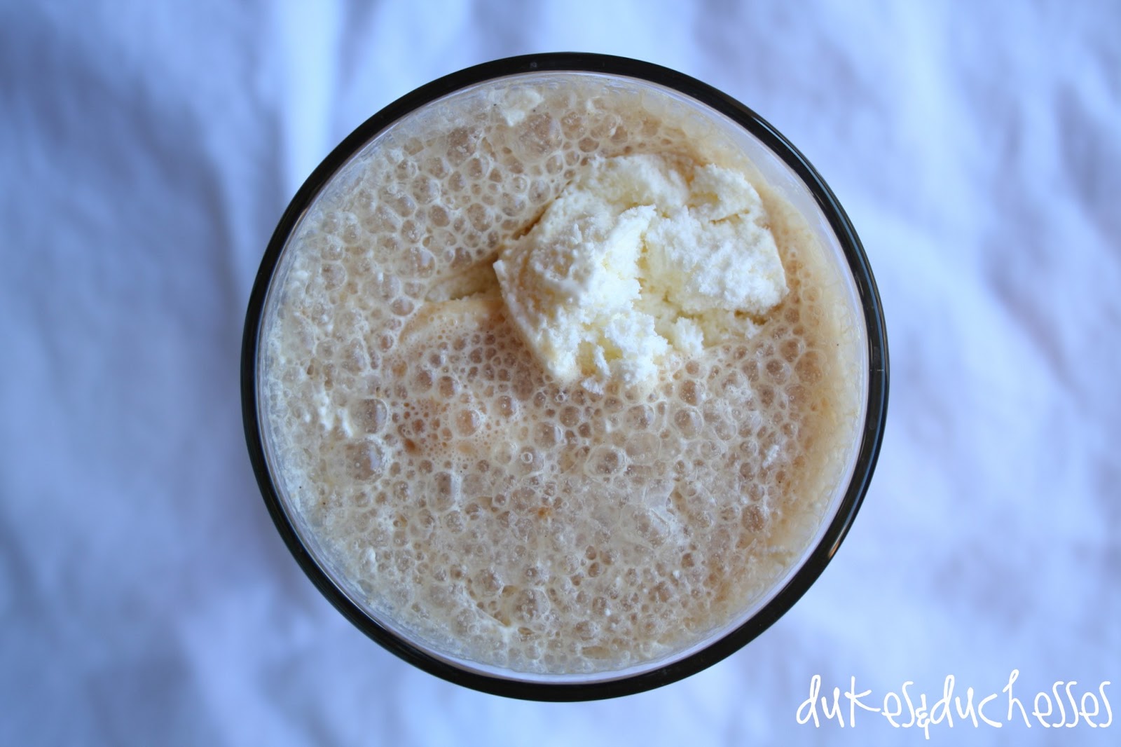 Blend the ingredients in a blender until the drink is fully mixed and frothy. Serve with a scoop of cool whip on top.