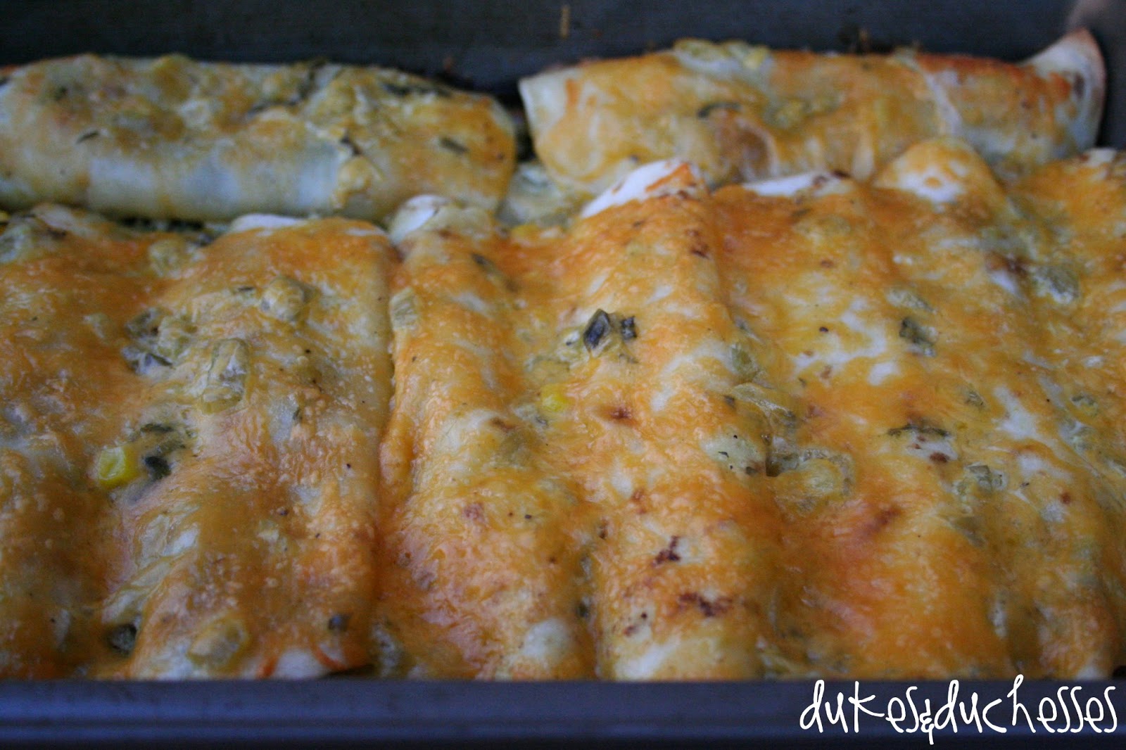 Dividing evenly, roll up the spinach mixture in the tortillas {about 1/3 cup per tortilla}. Place seam-side down in a shallow baking dish. Top with the cream sauce and the remaining 1/2 cup of cheddar. Cover with foil and bake until bubbling, 15 to 20 minutes. Uncover and bake until golden, 10 to 15 minutes more.