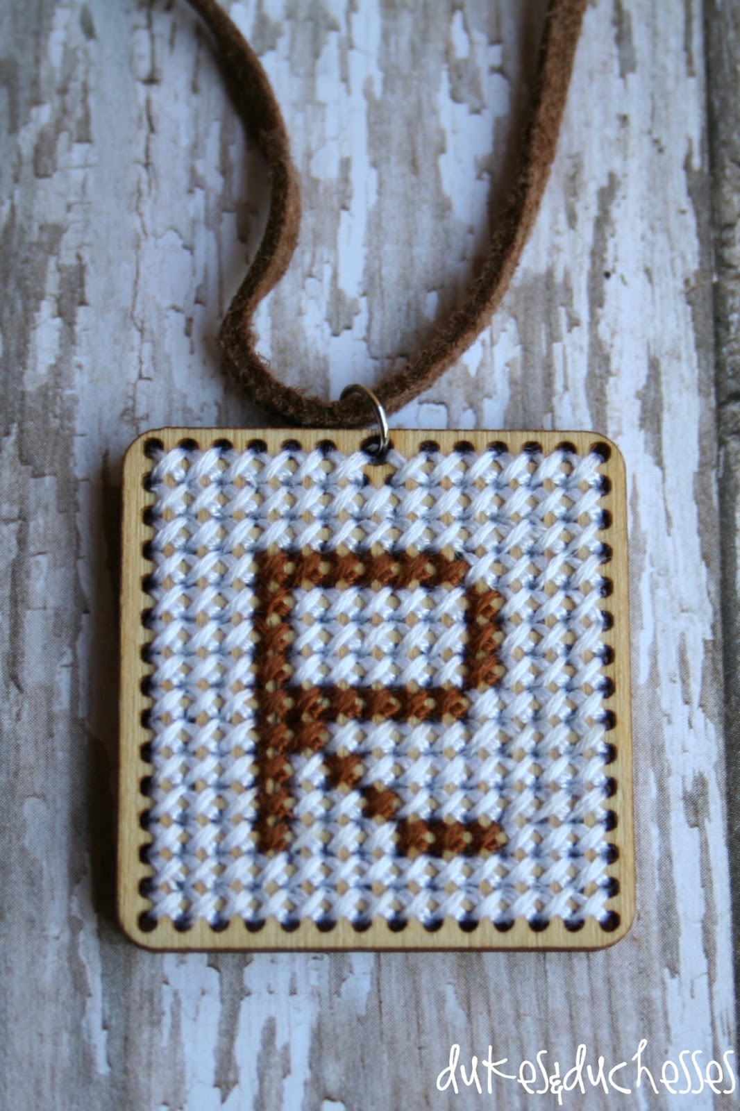 I love this vintage-looking cross-stitch monogrammed necklace I just finished making. It was such a quirky little project but the final result is really fun.
